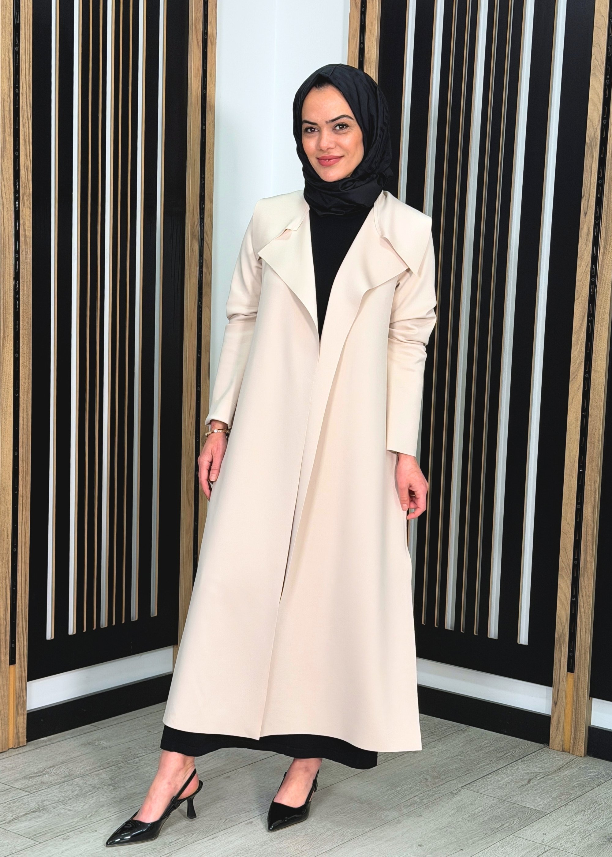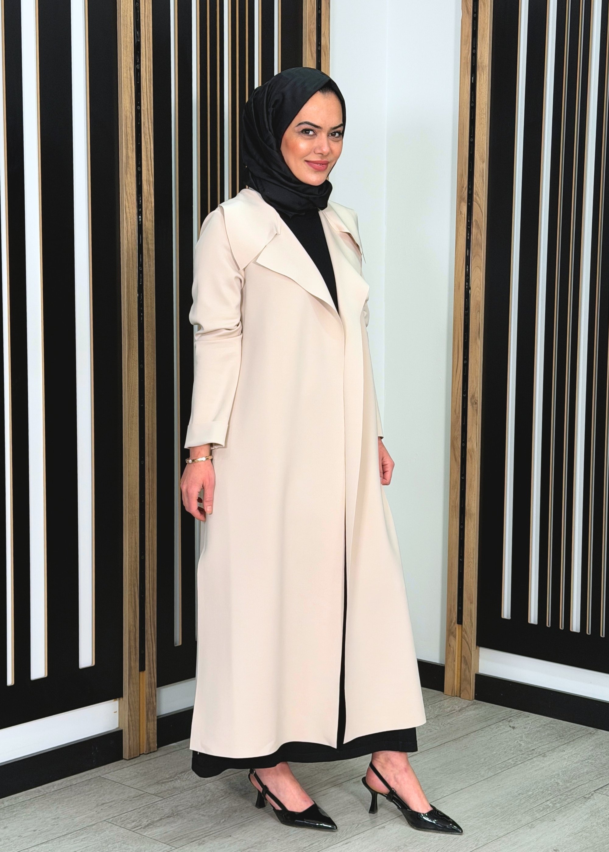 Miss Dalida Gömlek Yaka Denim Detaylı Uzun Ceket BLACK