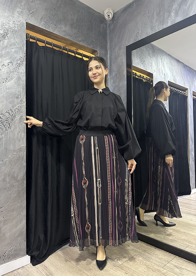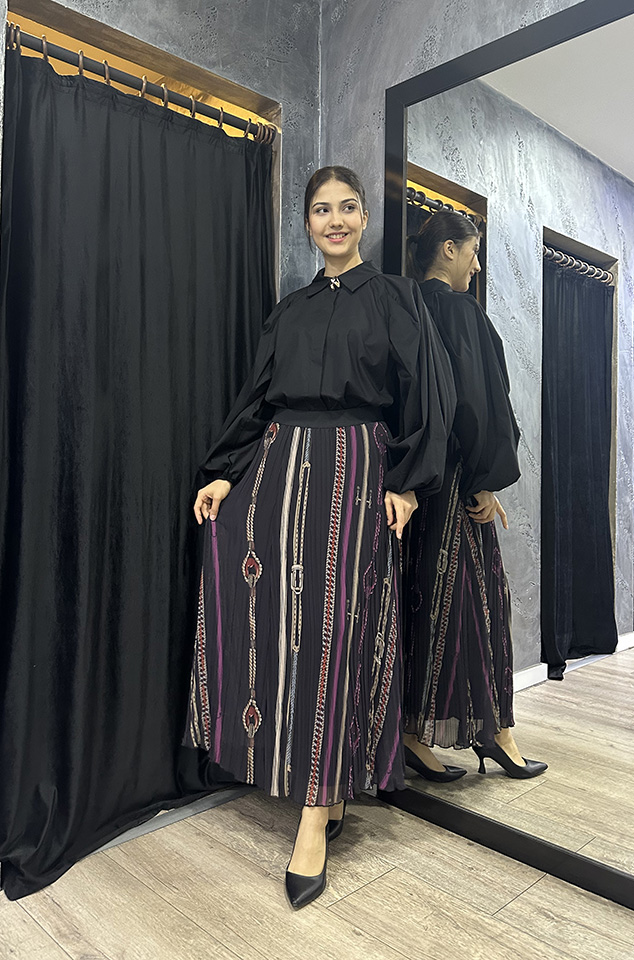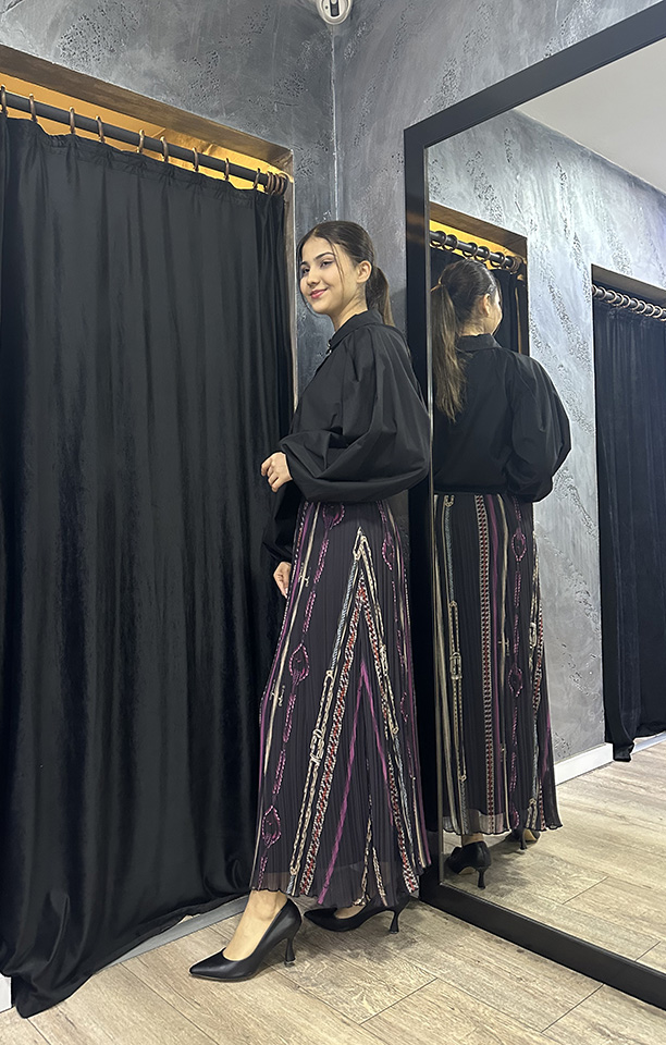 Zeynep Zümra Büzgü Detatlı Pliseli Etek MÜRDÜM