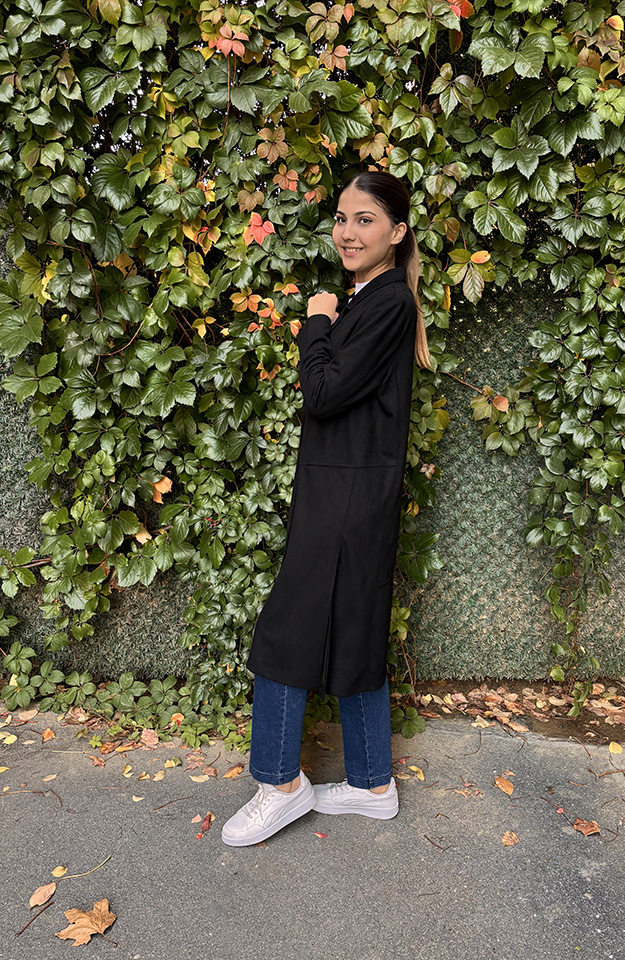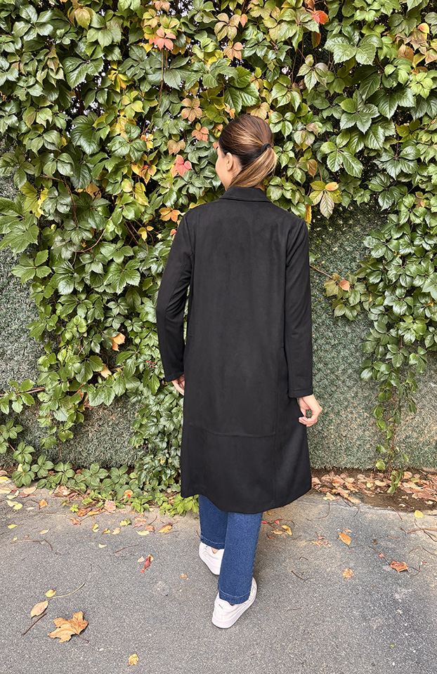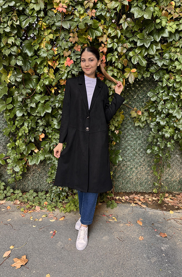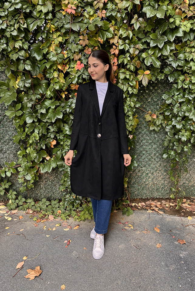 Noi Süet Belden Kesikli Uzun Blazer Ceket SİYAH