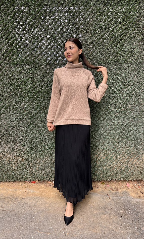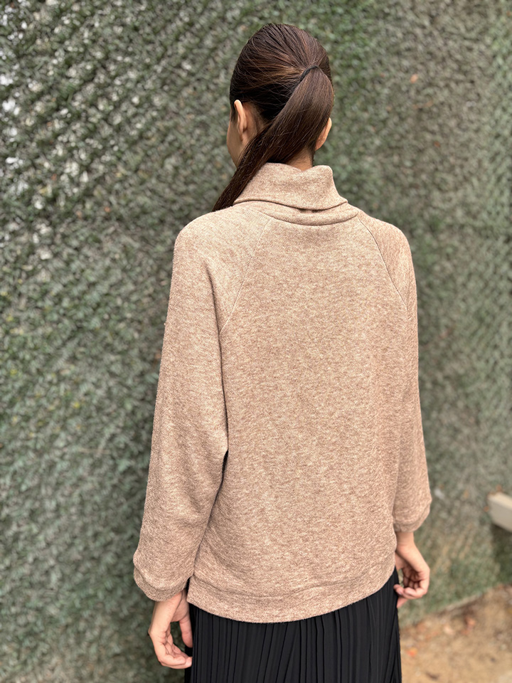 Noi Triko Angora Geniş Üçgen Yakalı Bluz CAMEL