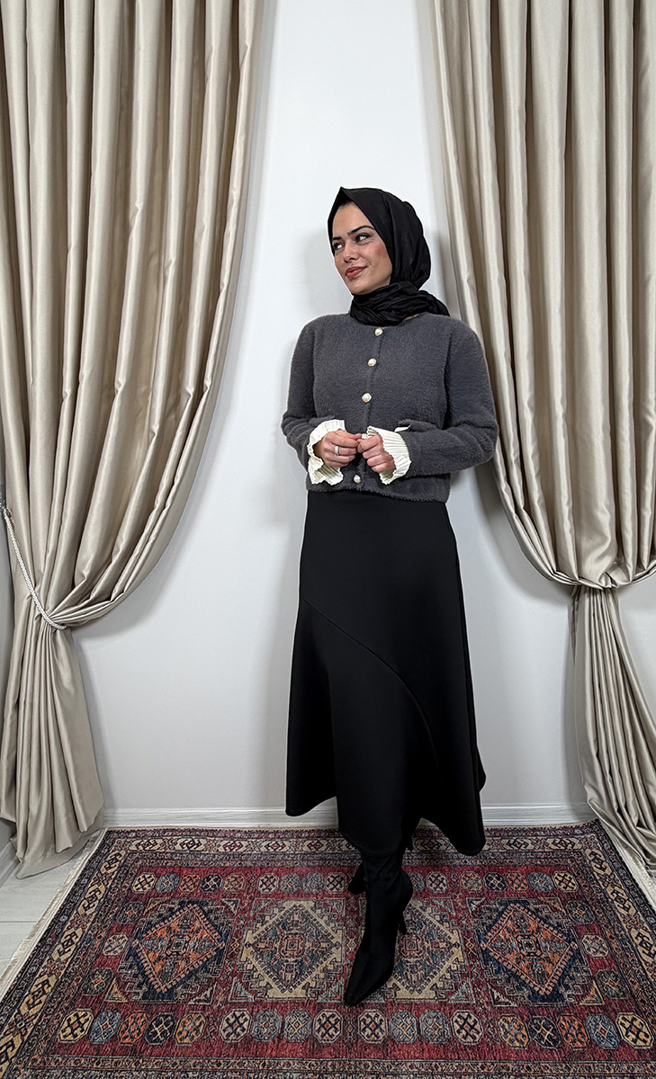 Nuss Önü Düğmeli Yumoş Hırka SİYAH