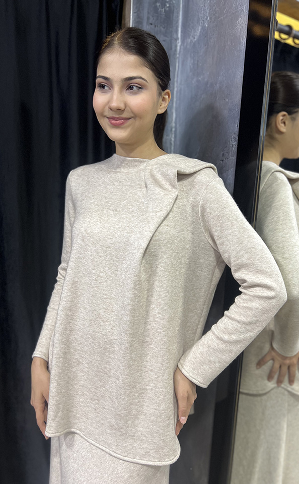 Miss Dalida Beli Büzgülü Cupra Gömlek Stone