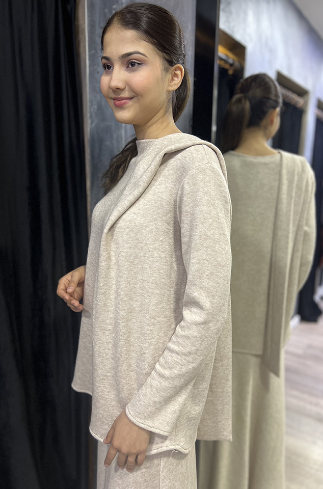 Noi Triko Angora Yuvarlak Yakadan Fularlı Bluz BEJ