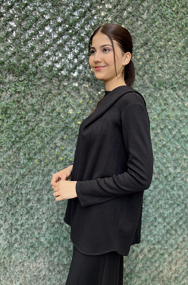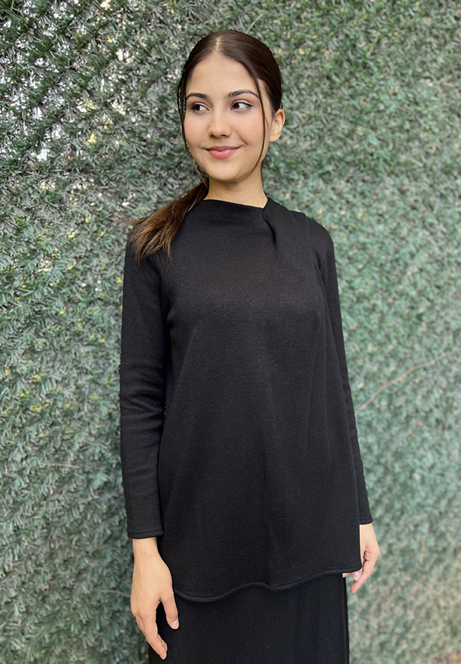 Noi Triko Angora Yuvarlak Yakadan Fularlı Bluz SİYAH