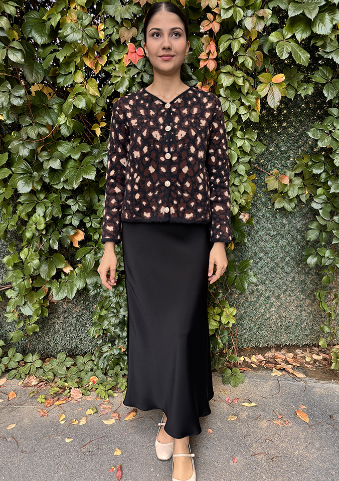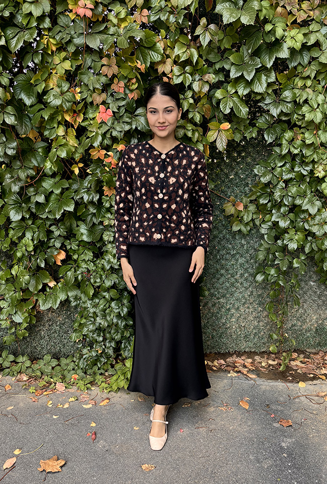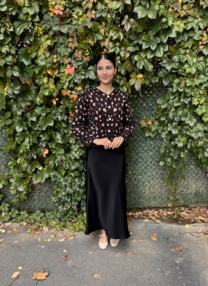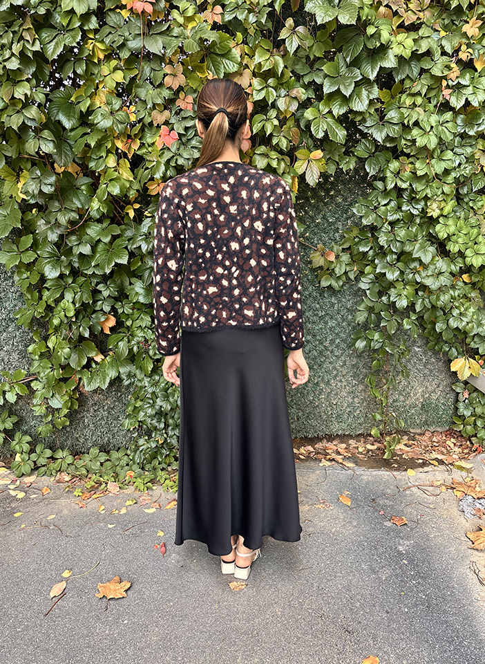 Noi Triko Çift Renkli Leopar Kısa Hırka KAHVERENGİ