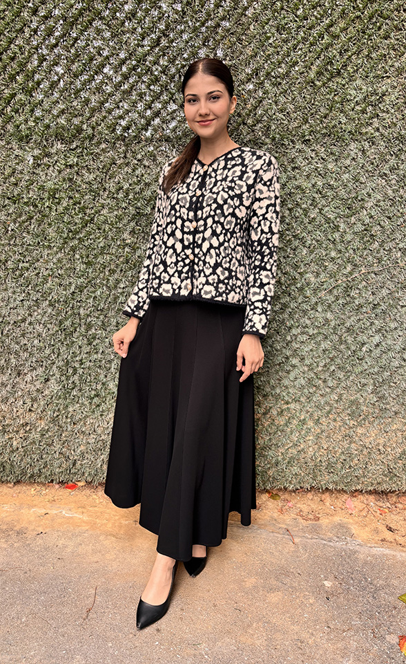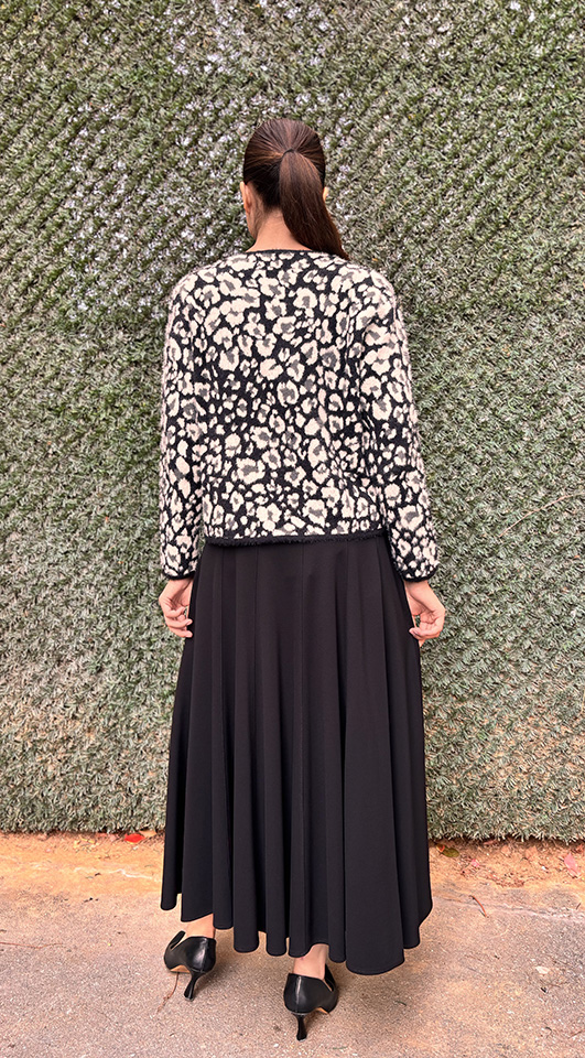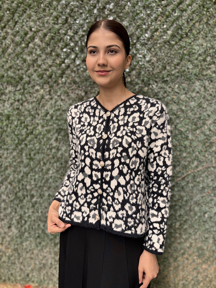 Noi Triko Çift Renkli Leopar Kısa Hırka SİYAH