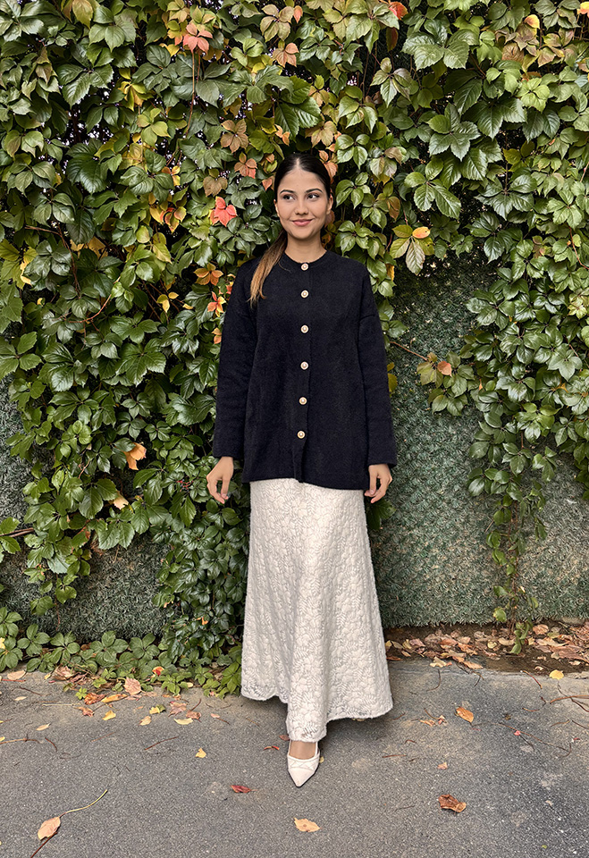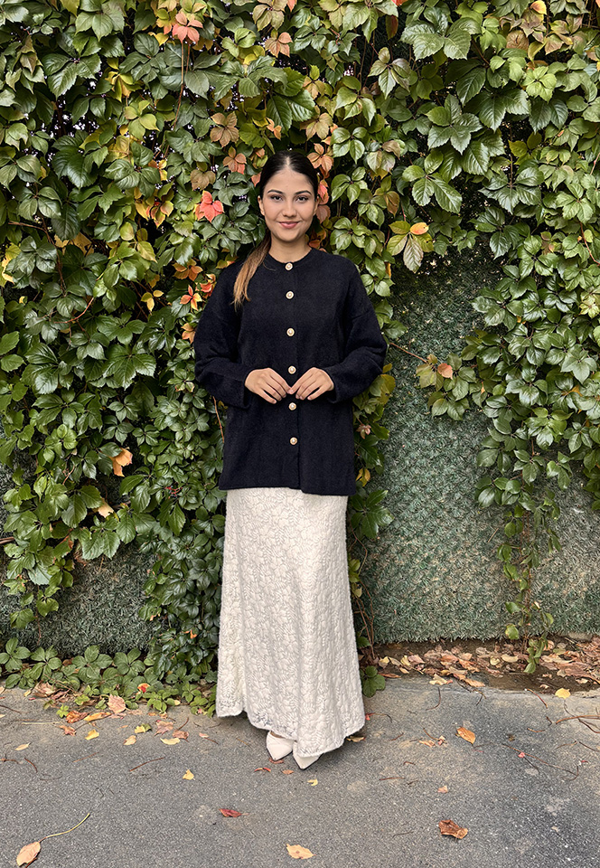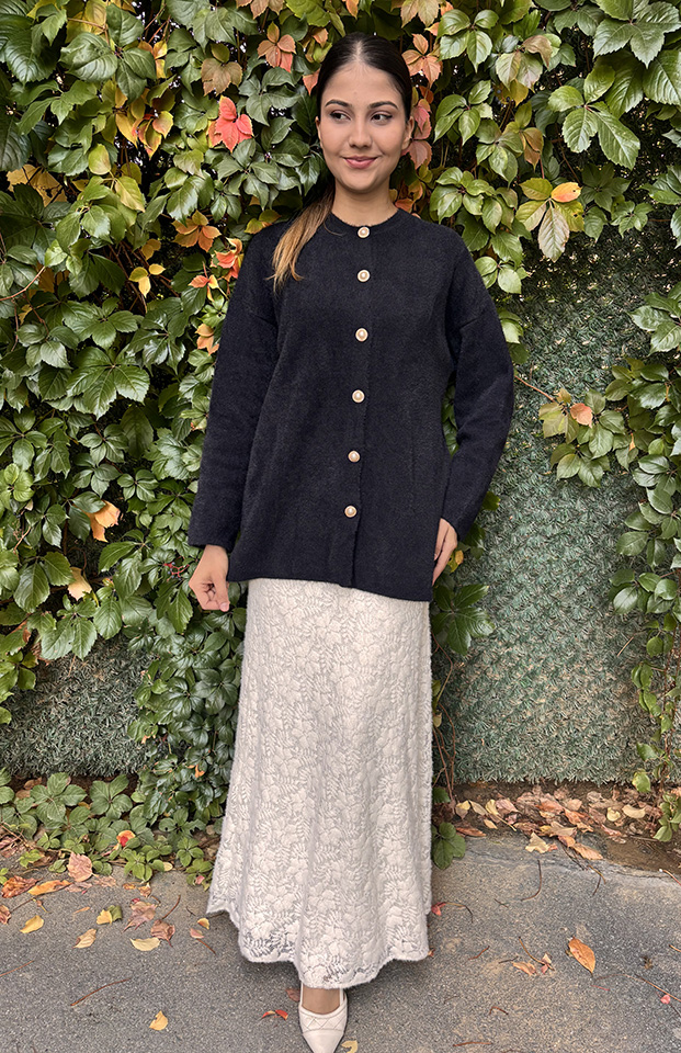 Miss Dalida Dk Yaka Uzun Triko Hırka BLACK
