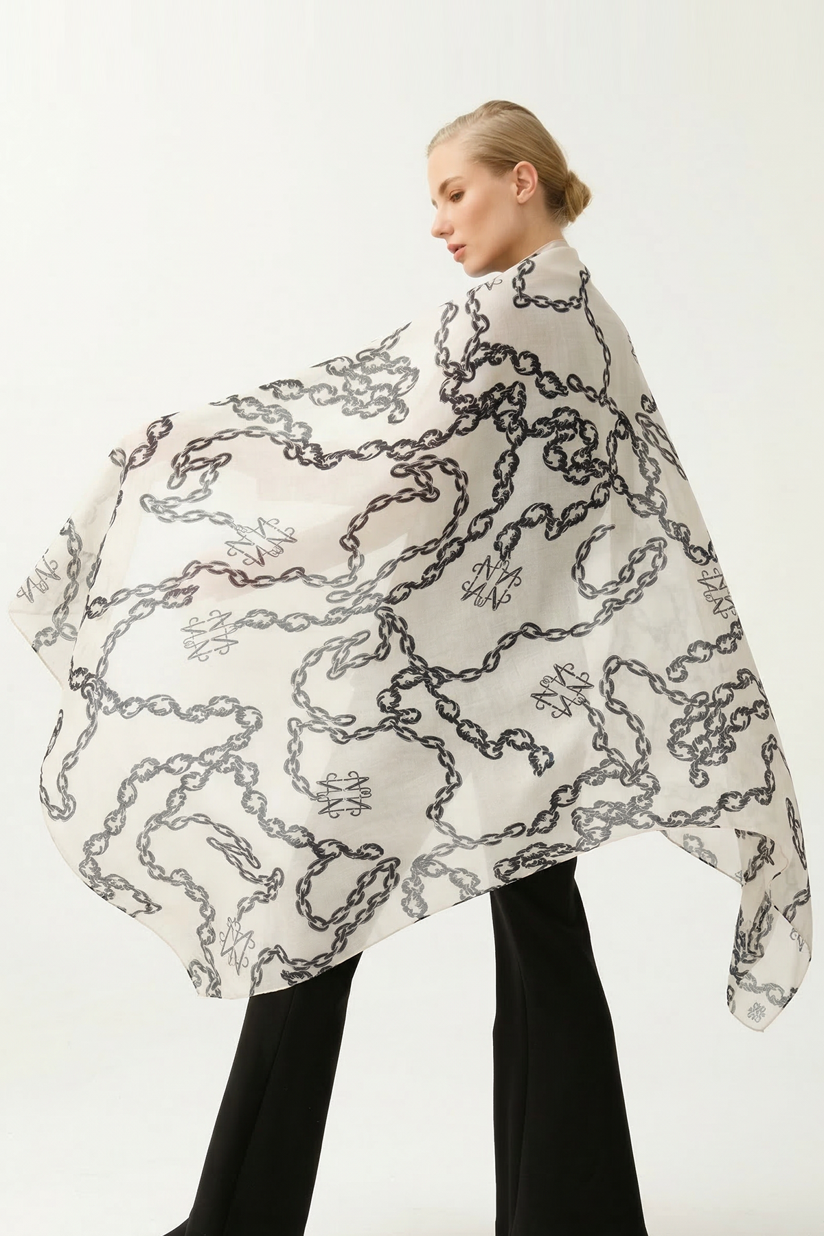 Noİ Viscon Labirent İnce Zincir Desenli Şal EKRU
