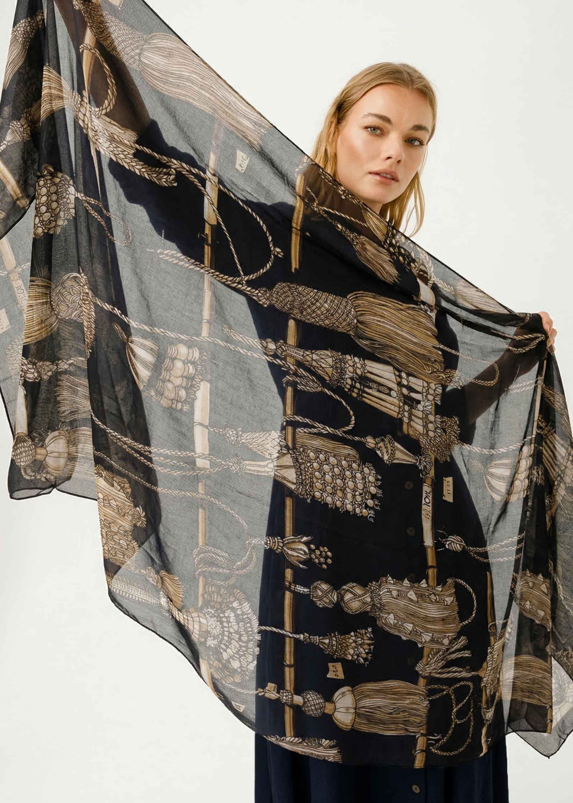 Noİ Viscon Tasel Eskiz Desenli Şal SİYAH