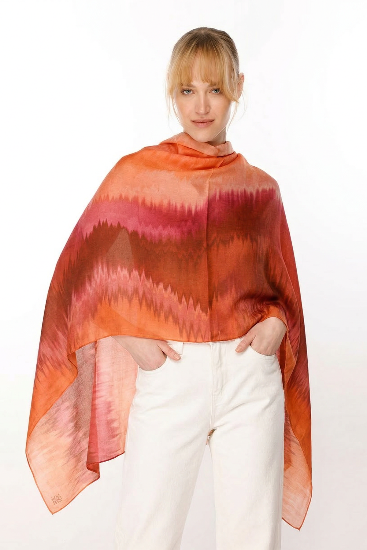 Noİ Viscon Zikzak Degrade Batikli Şal MERCAN