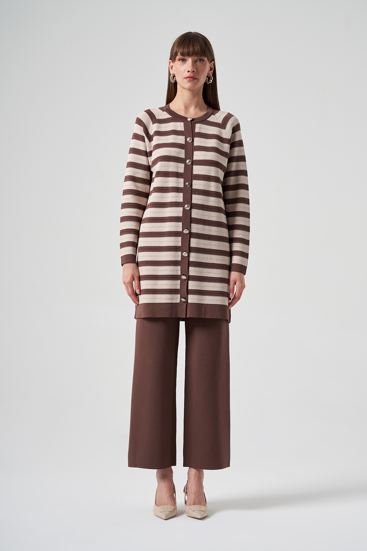 Ürün Pantolonlu ve hırkalı takımdır. Pantolon beli lastiklidir hırka düğmeleri dikişlidir.