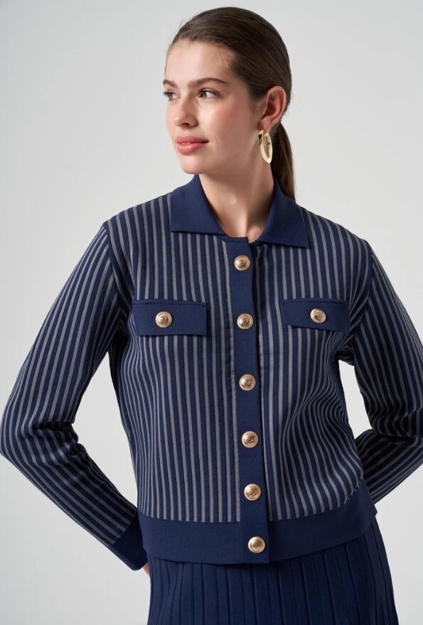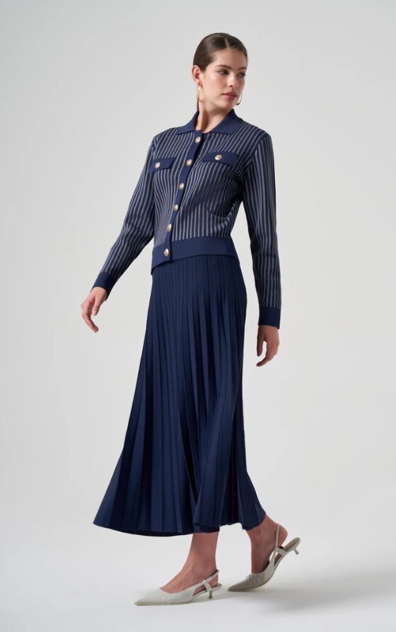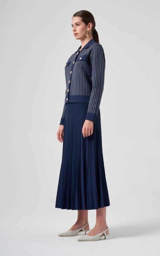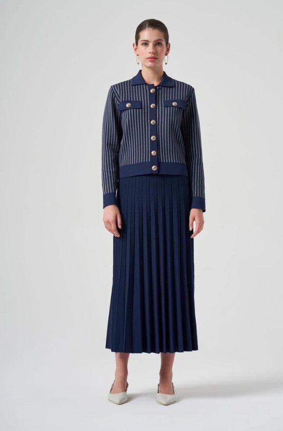 Takım hırkası çıtçıtlıdır, etek beli lastiklidir.