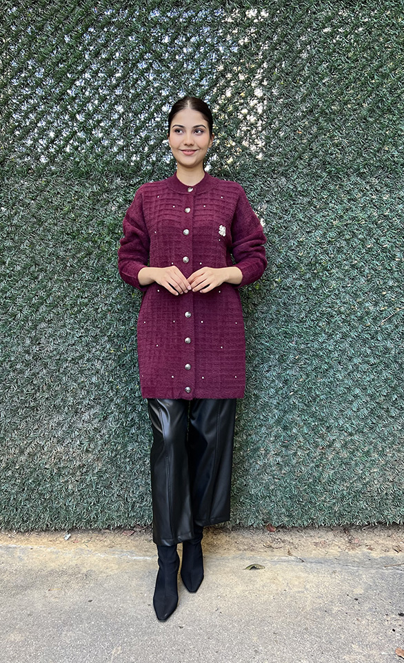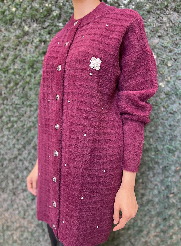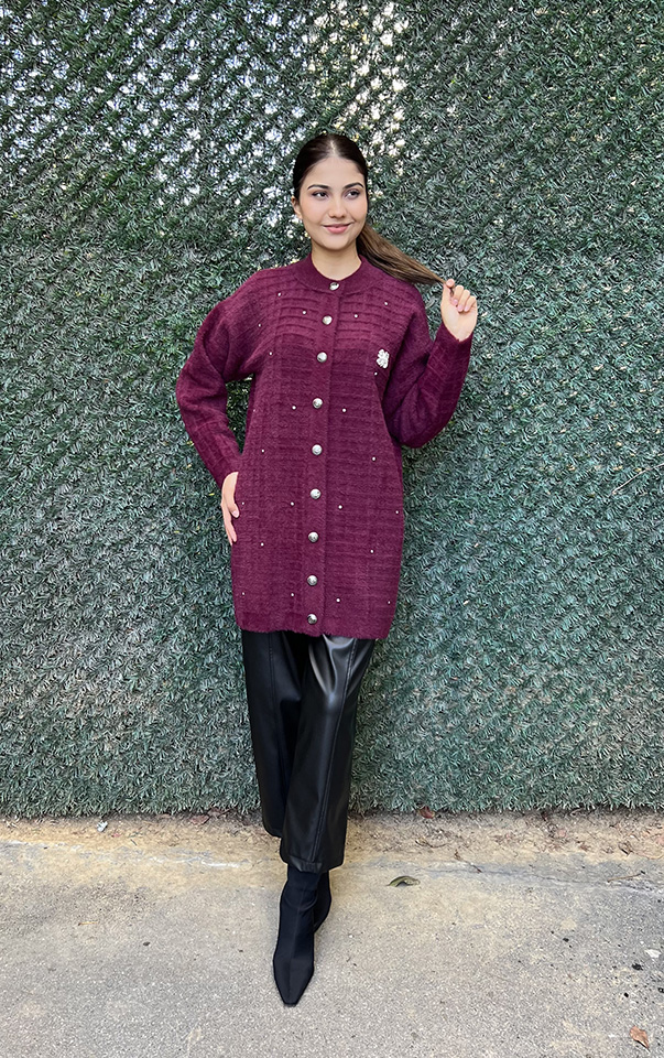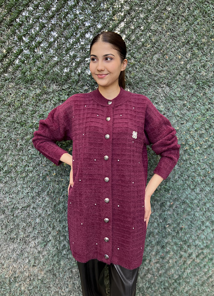 Nuss Önü Düğmeli Yumoş Hırka BORDO