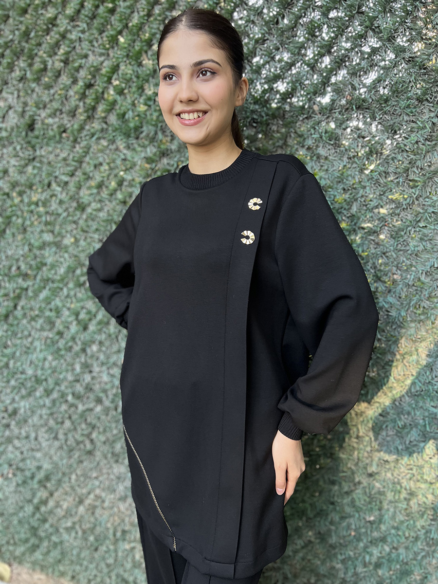 Nuss Fermuar Detaylı Pantolonlu Takım SİYAH