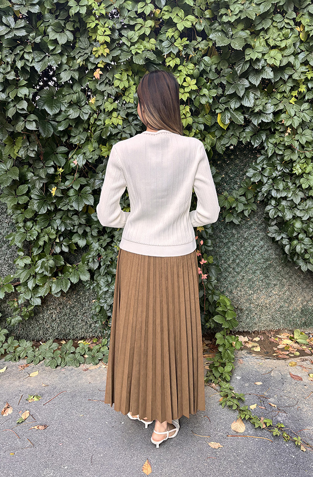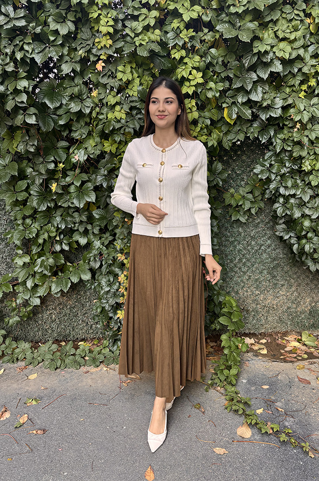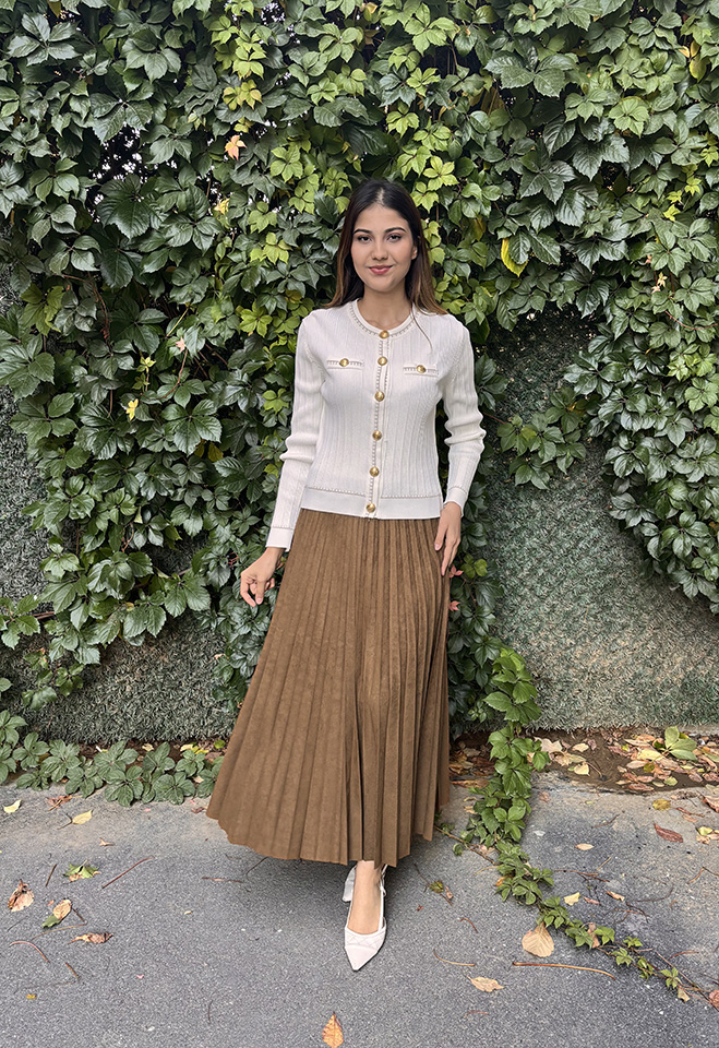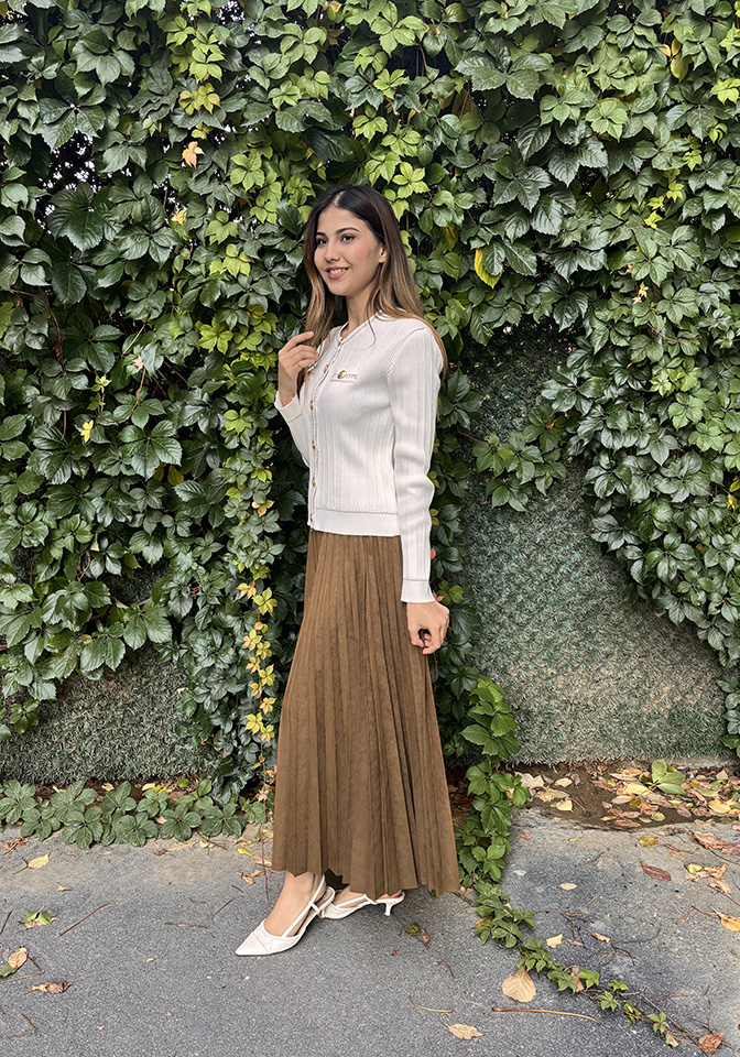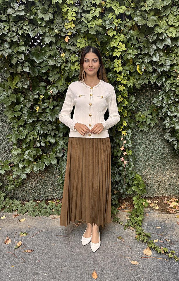 Ceremony İnce Plisoley Süet Etek HAKİ