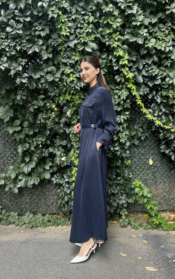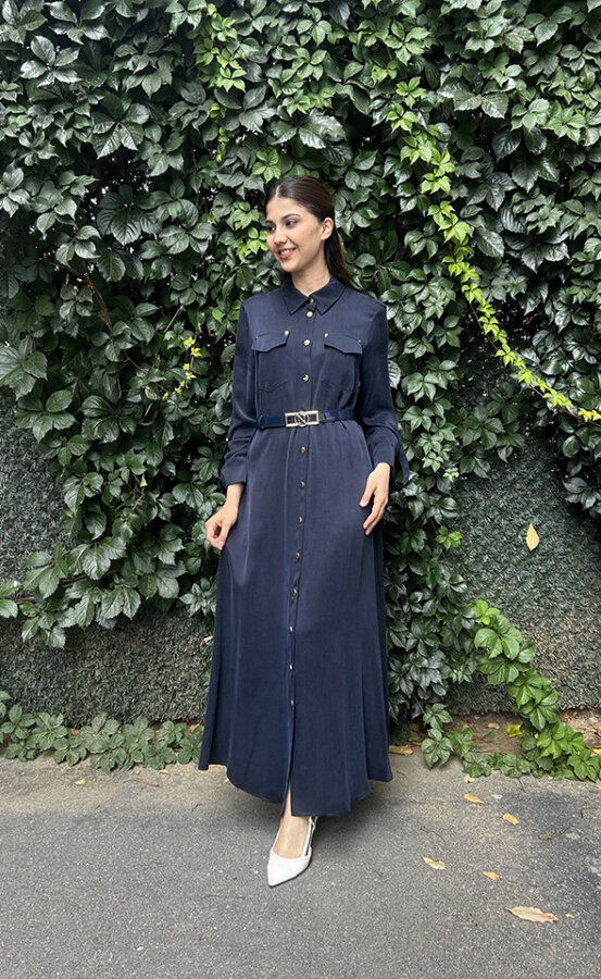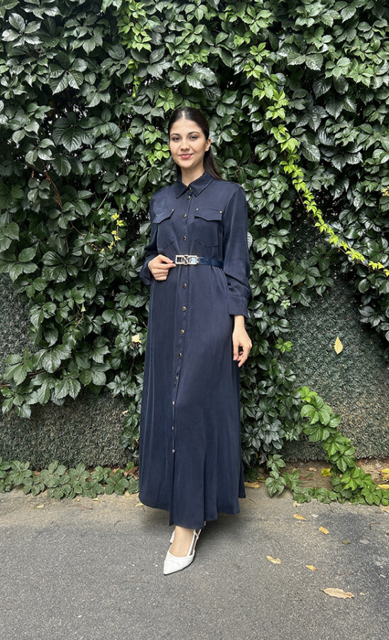 Nuss Gold Düğme Detaylı Elbise LACİVERT