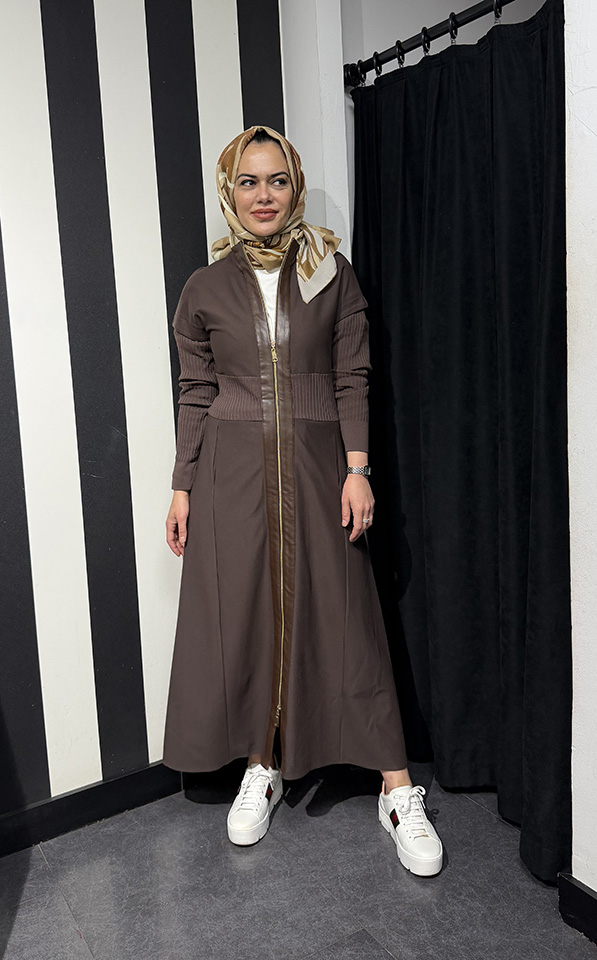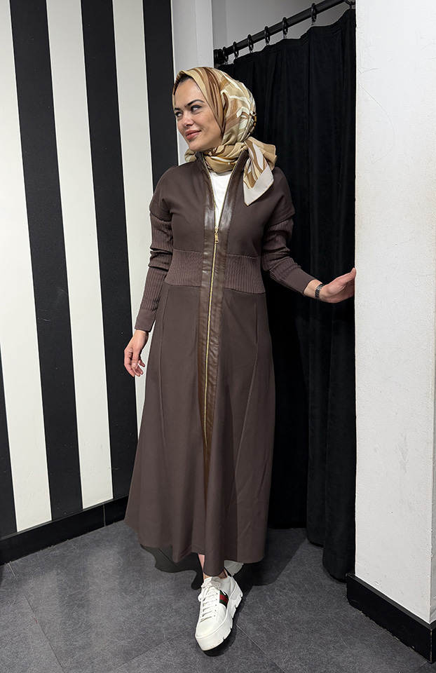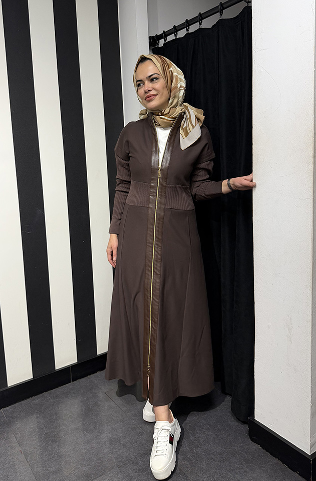 Nuss Kolları Triko Belden Oturtmalı Kap KAHVE