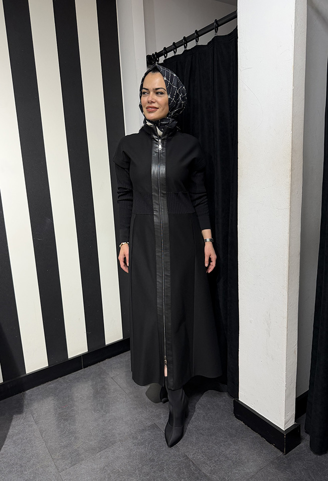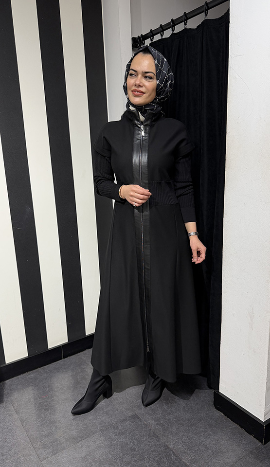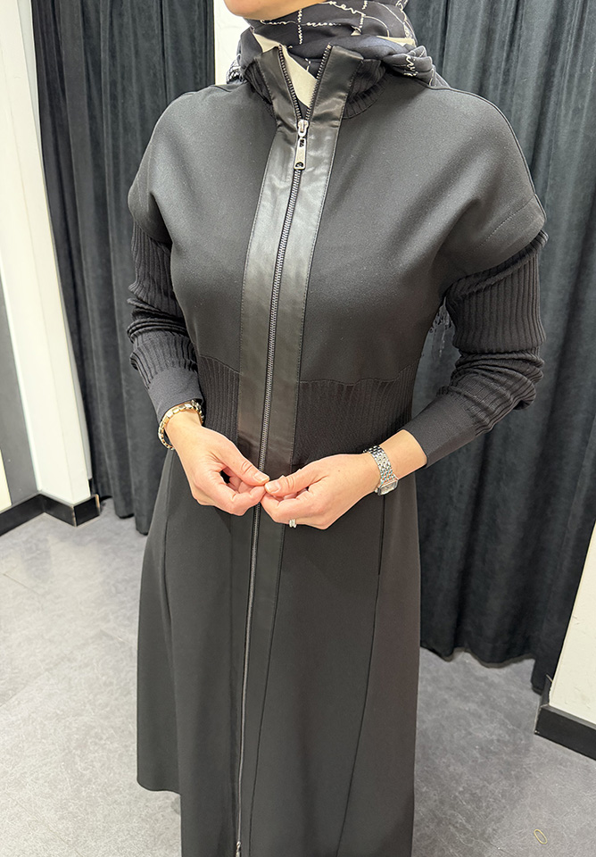Nuss Kolları Triko Belden Oturtmalı Kap SİYAH