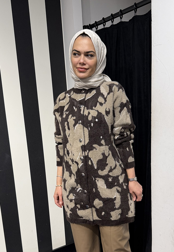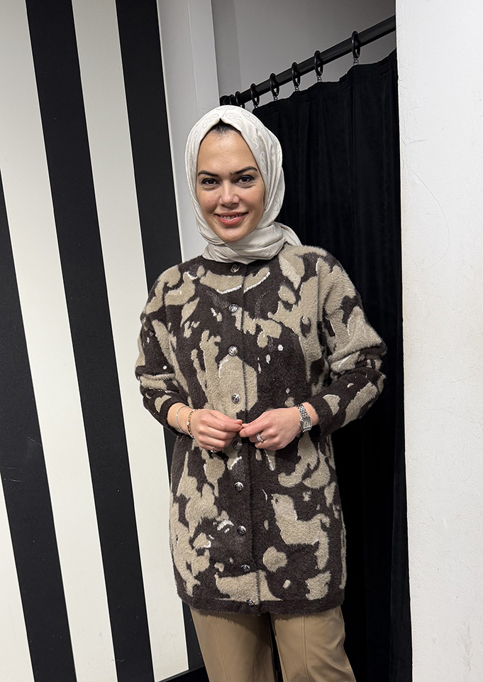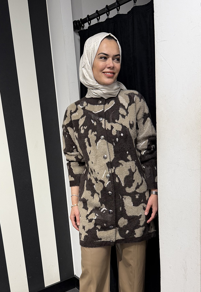 Nuss Leopar Desenli Hırka KAHVE