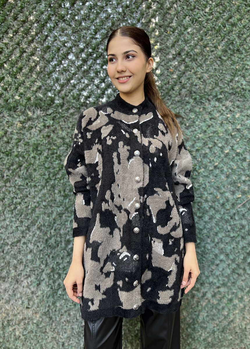 Nuss Önü Düğmeli Yumoş Hırka SİYAH
