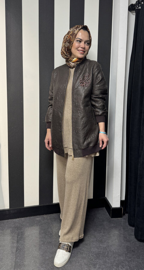 Qupra Yakası Ve Kolları Kürklü Kap CAMEL