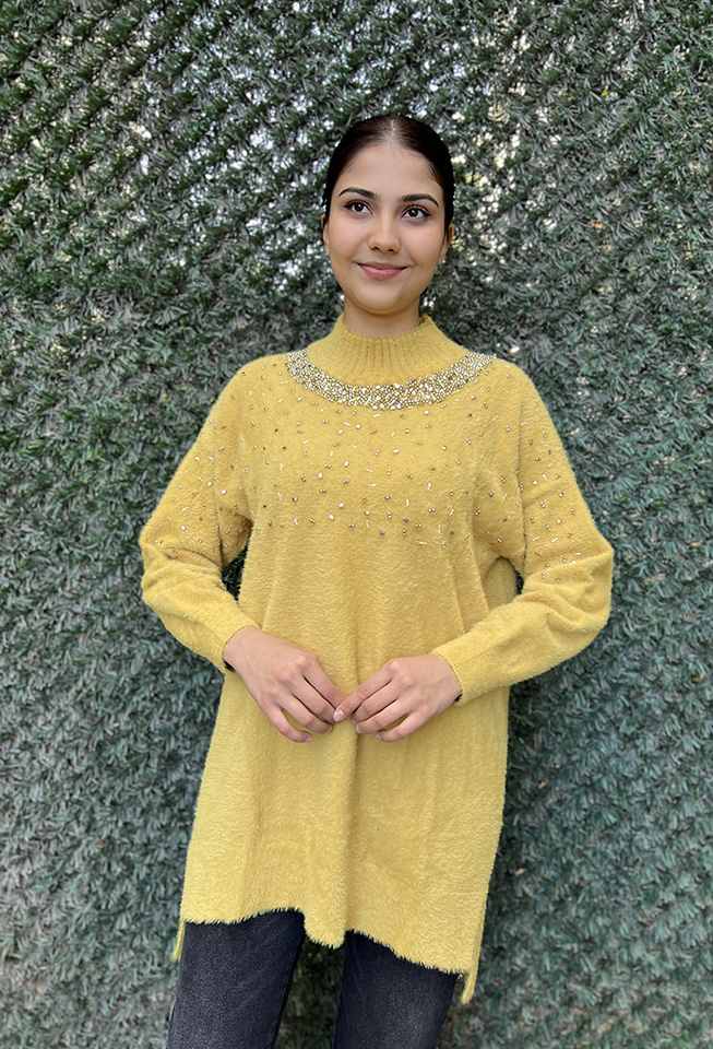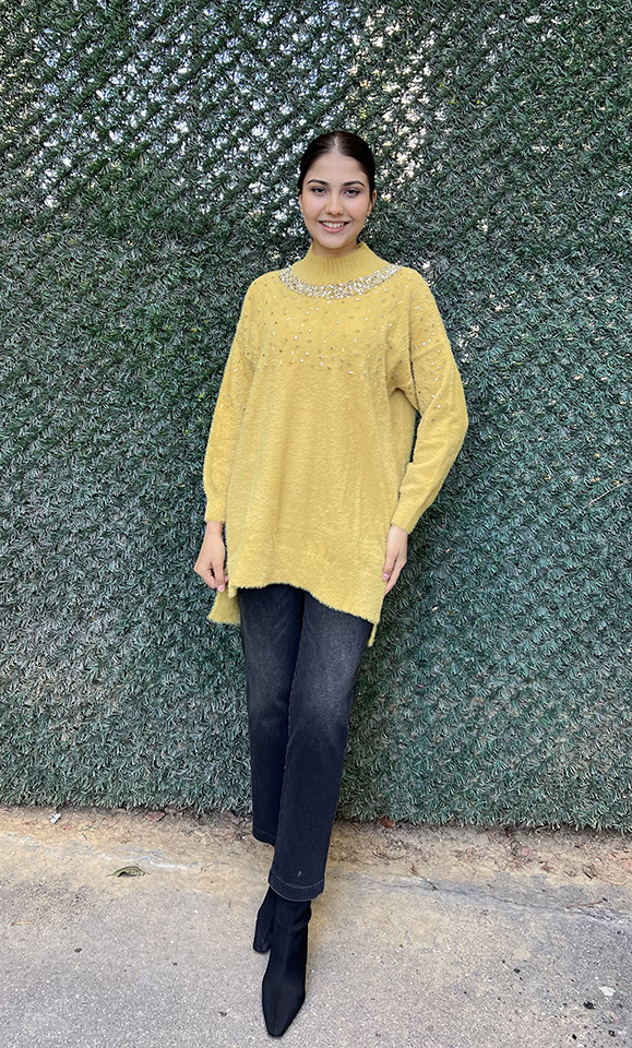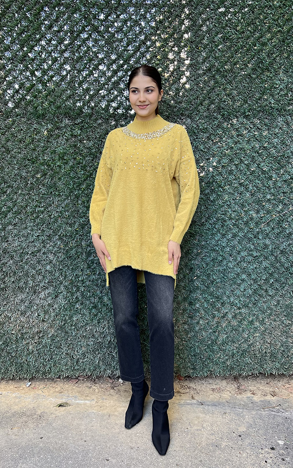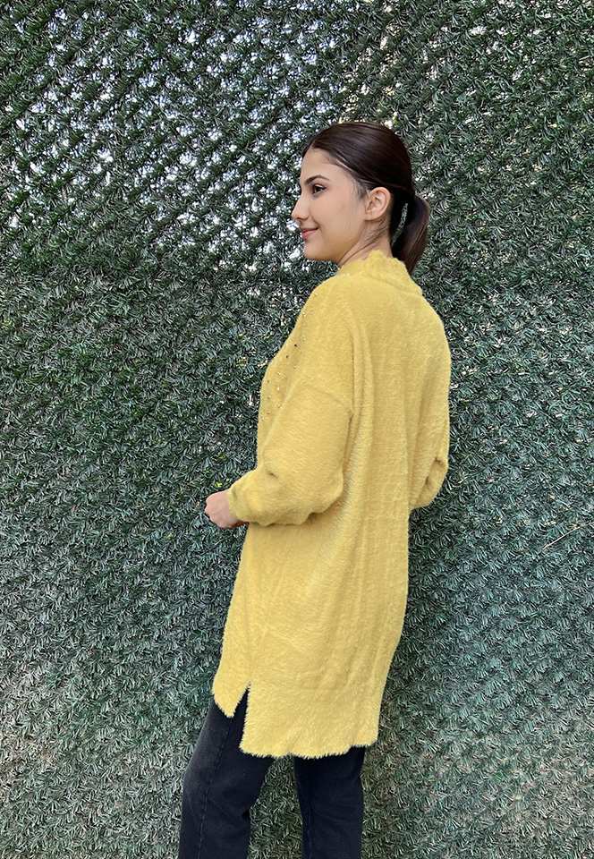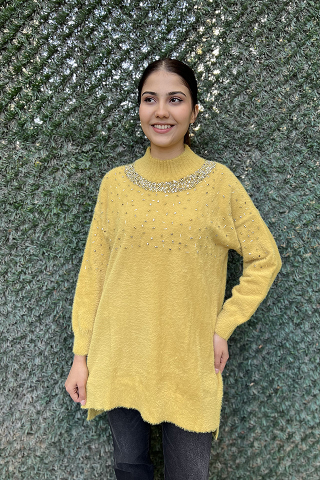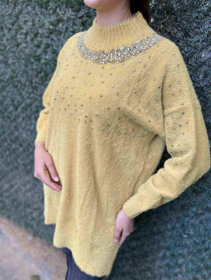 Cloche Taşlı Yakalı Triko Kazak SİYAH