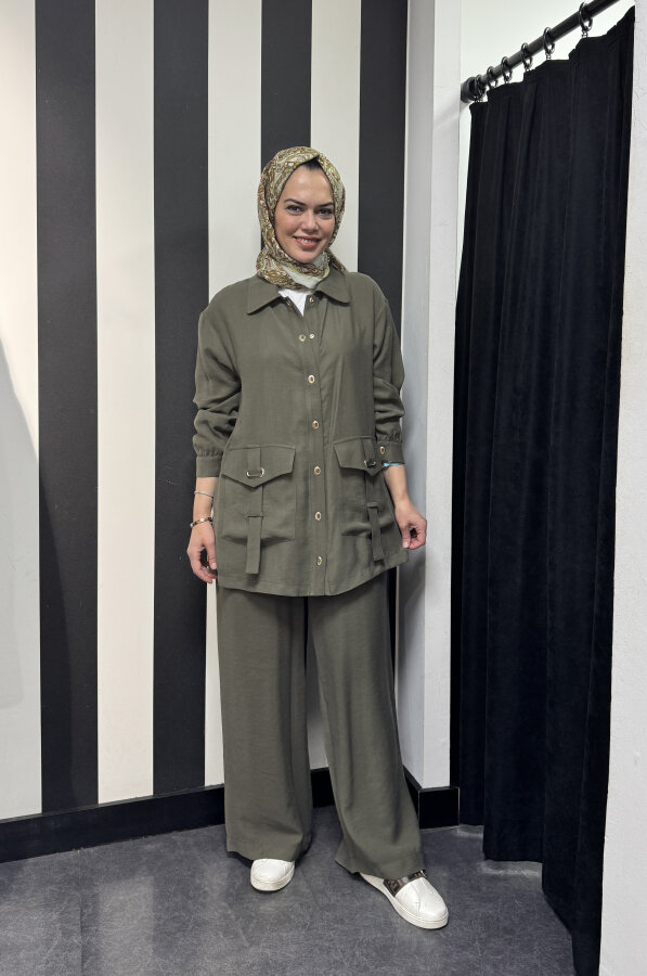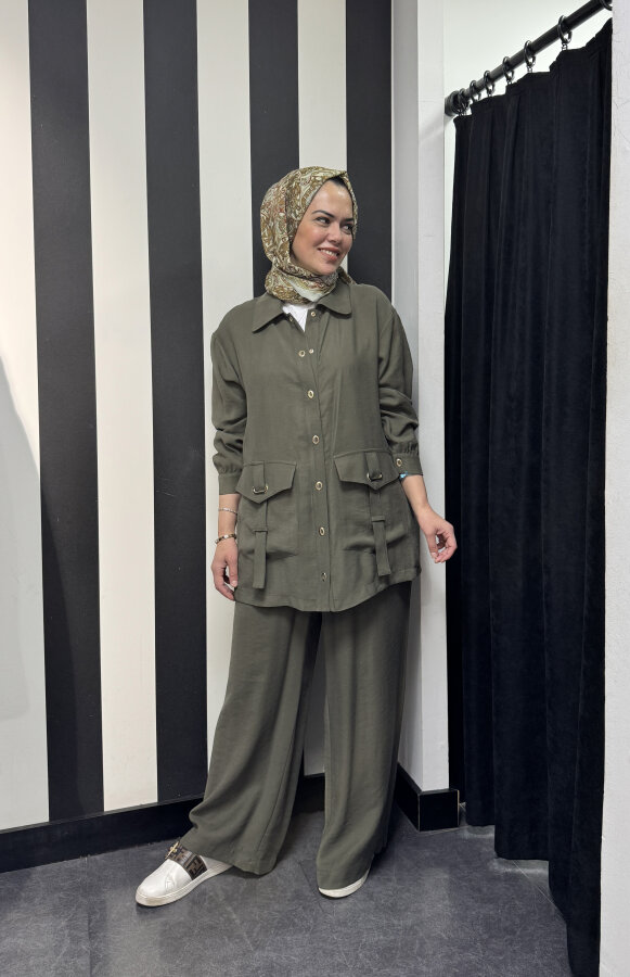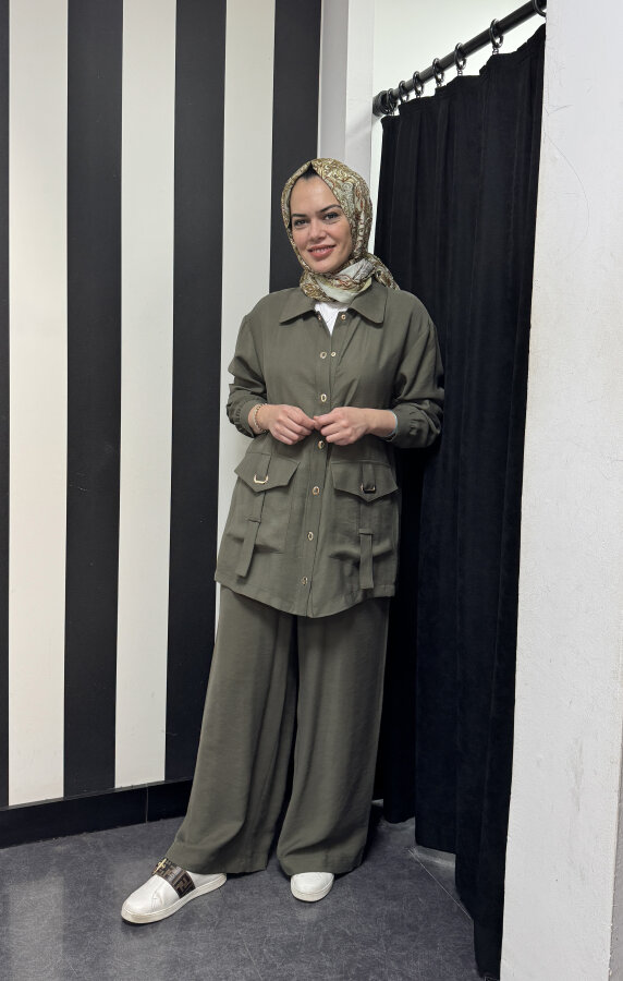 Nuss Önü Çıtçıtlı ve Cepli Pantolonlu Takım HAKİ