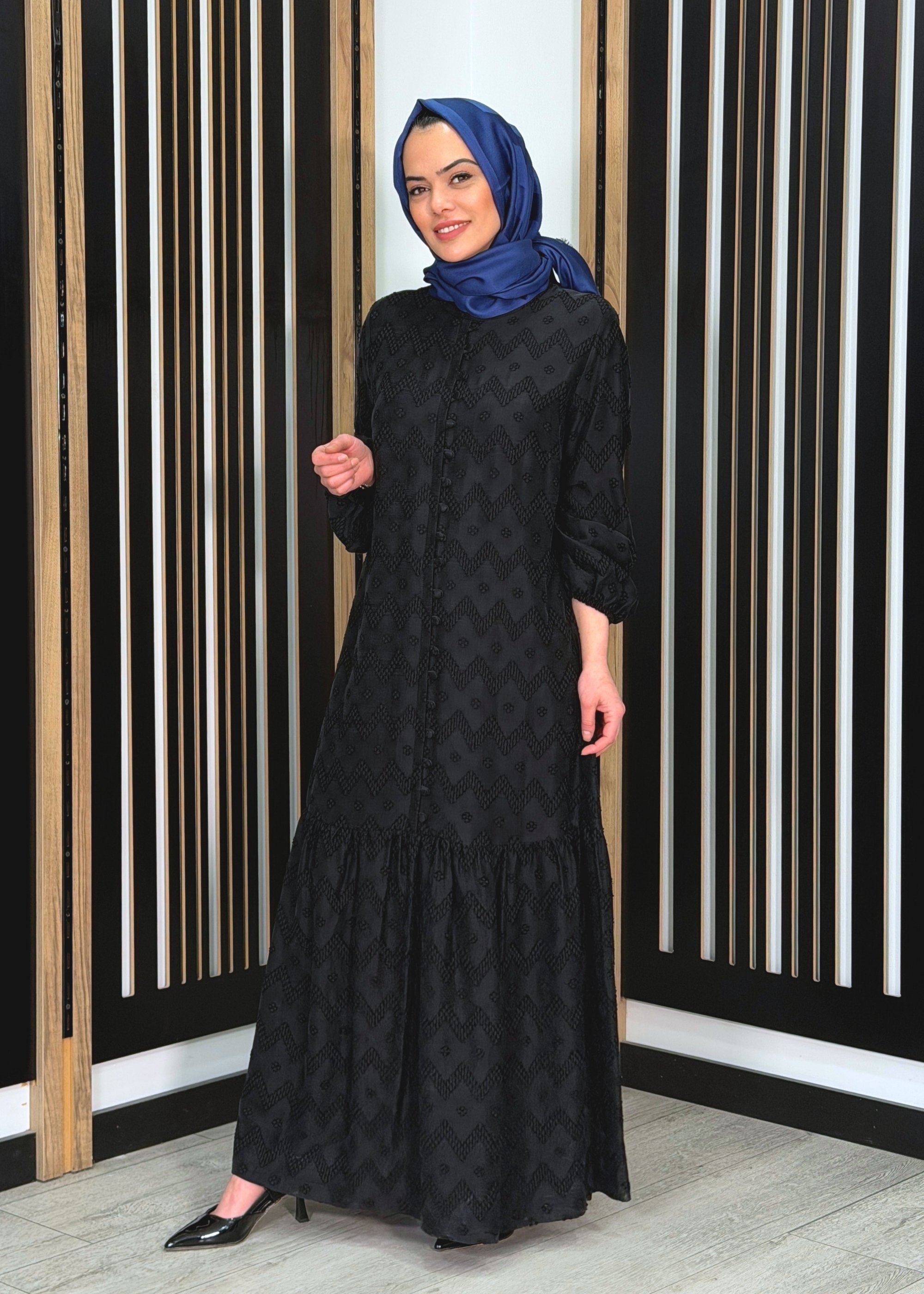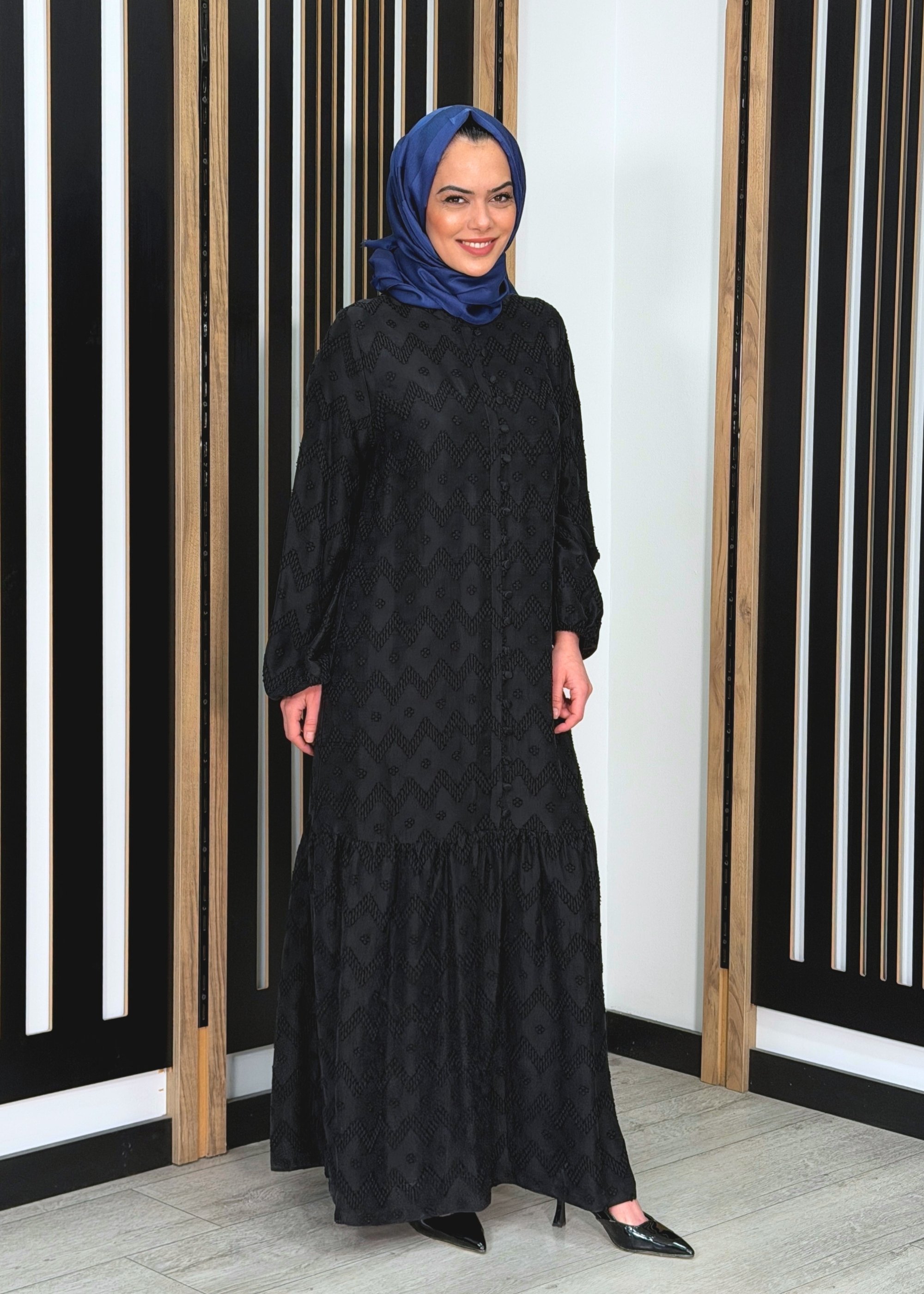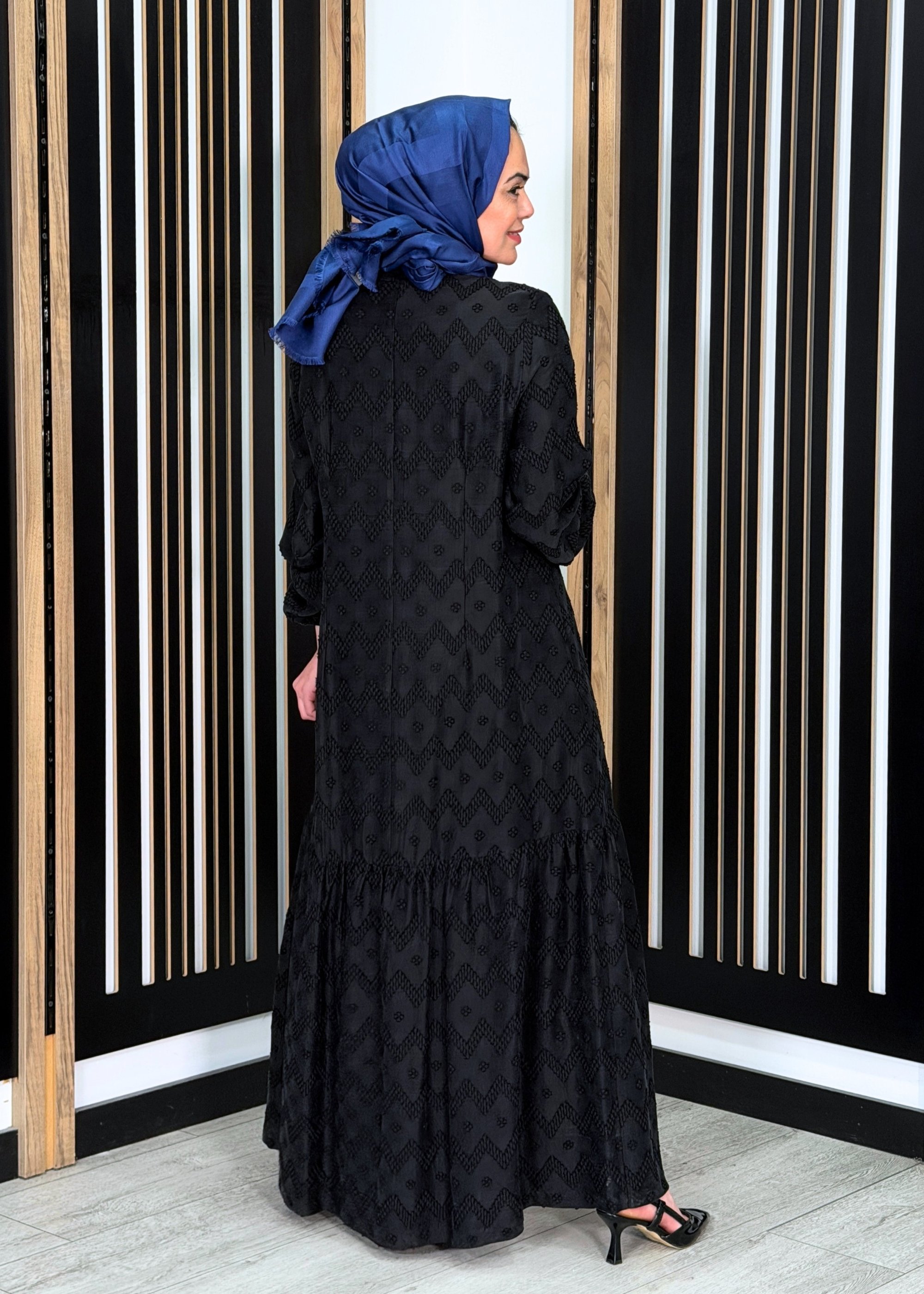 MissWhence Fermuar Detaylı Kendinden Desenli Elbise SİYAH
