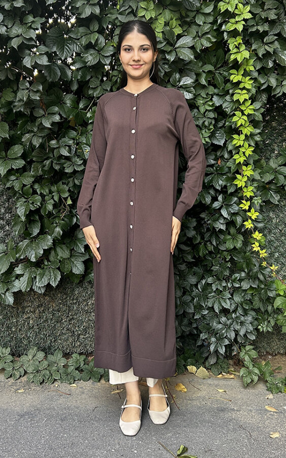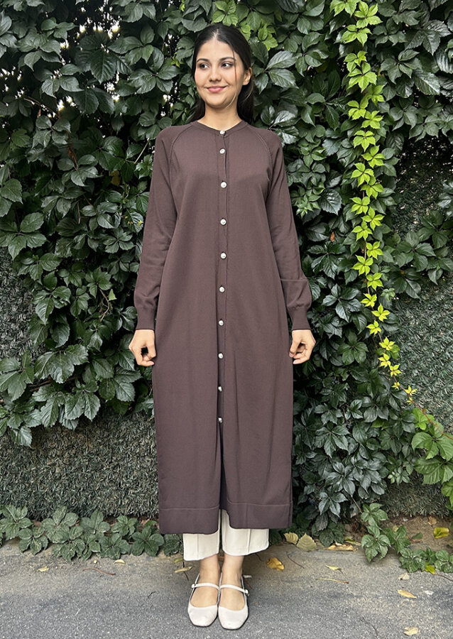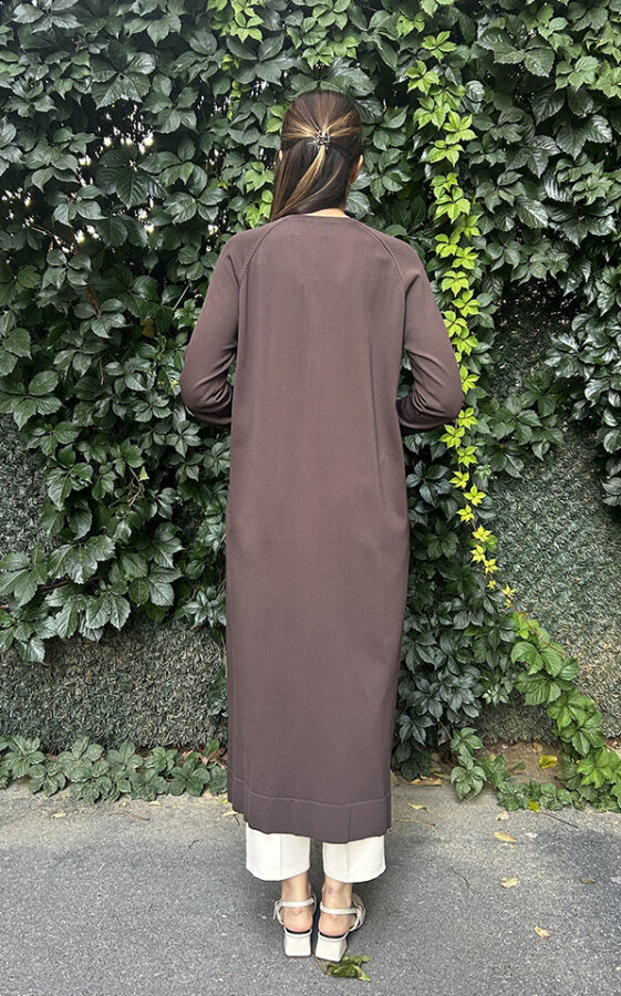 Nuss Önü Düğmeli Uzun Hırka KAHVE