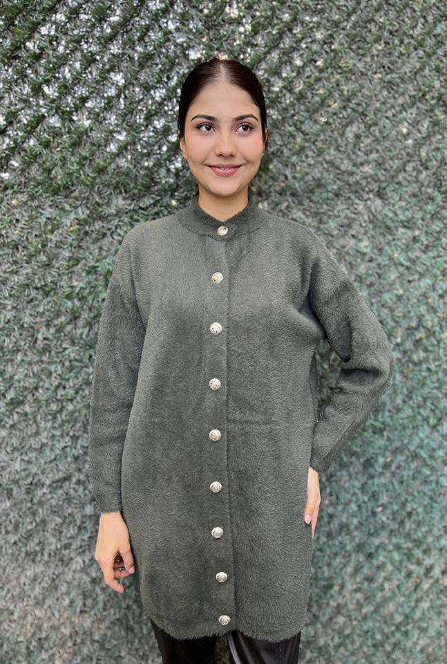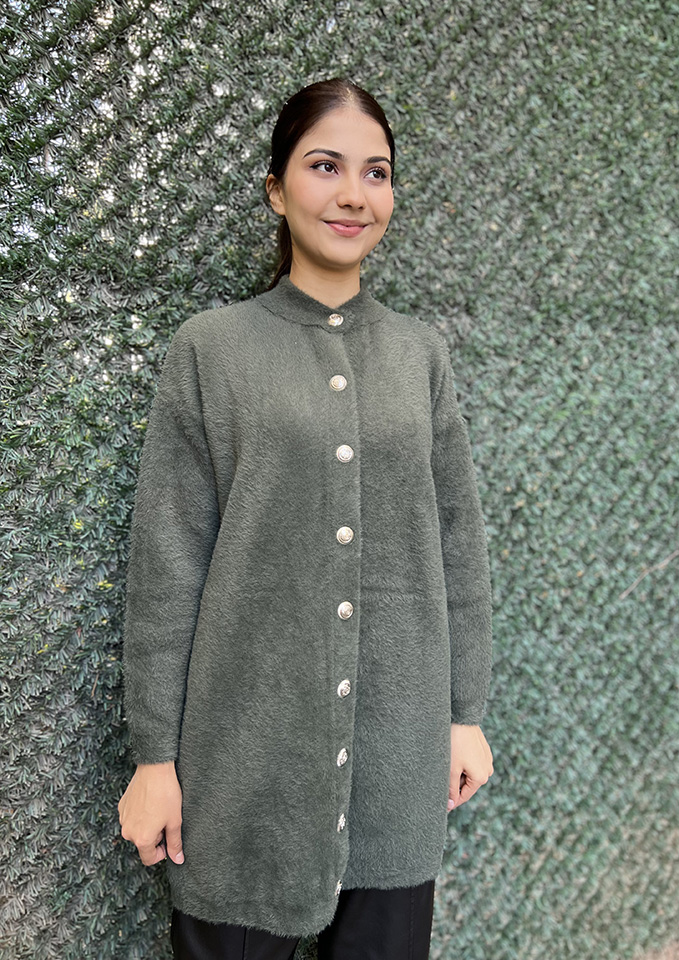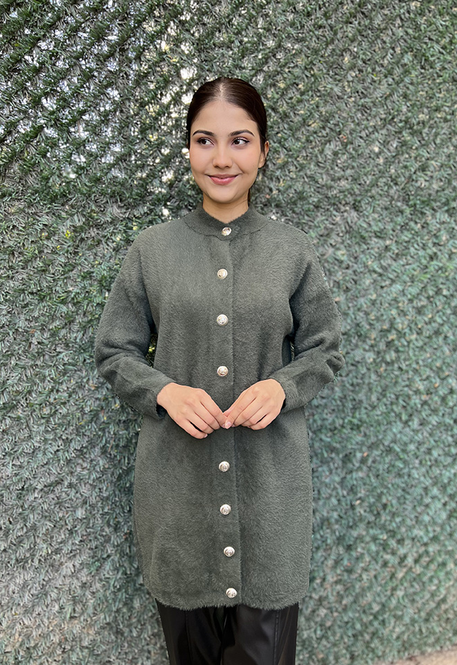 Nuss Önü Düğmeli Yumoş Hırka HAKİ