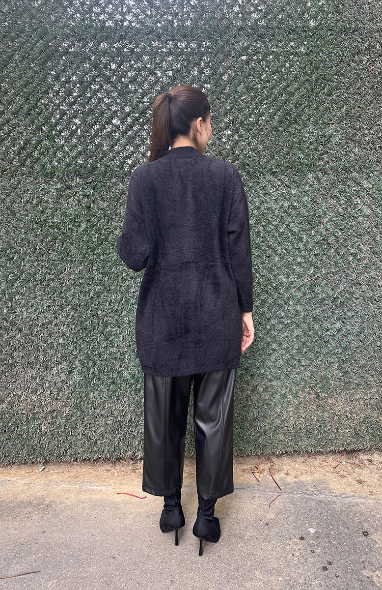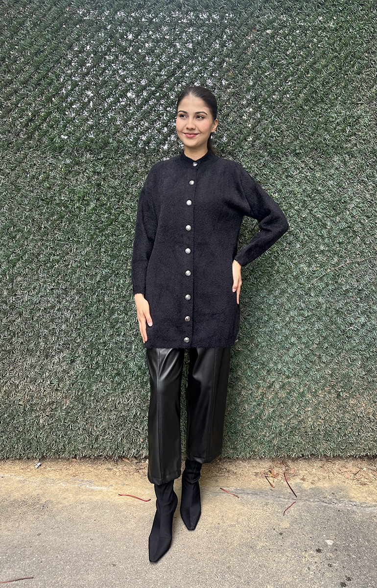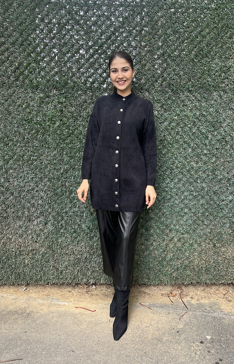 Nuss Önü Düğmeli Uzun Hırka SİYAH