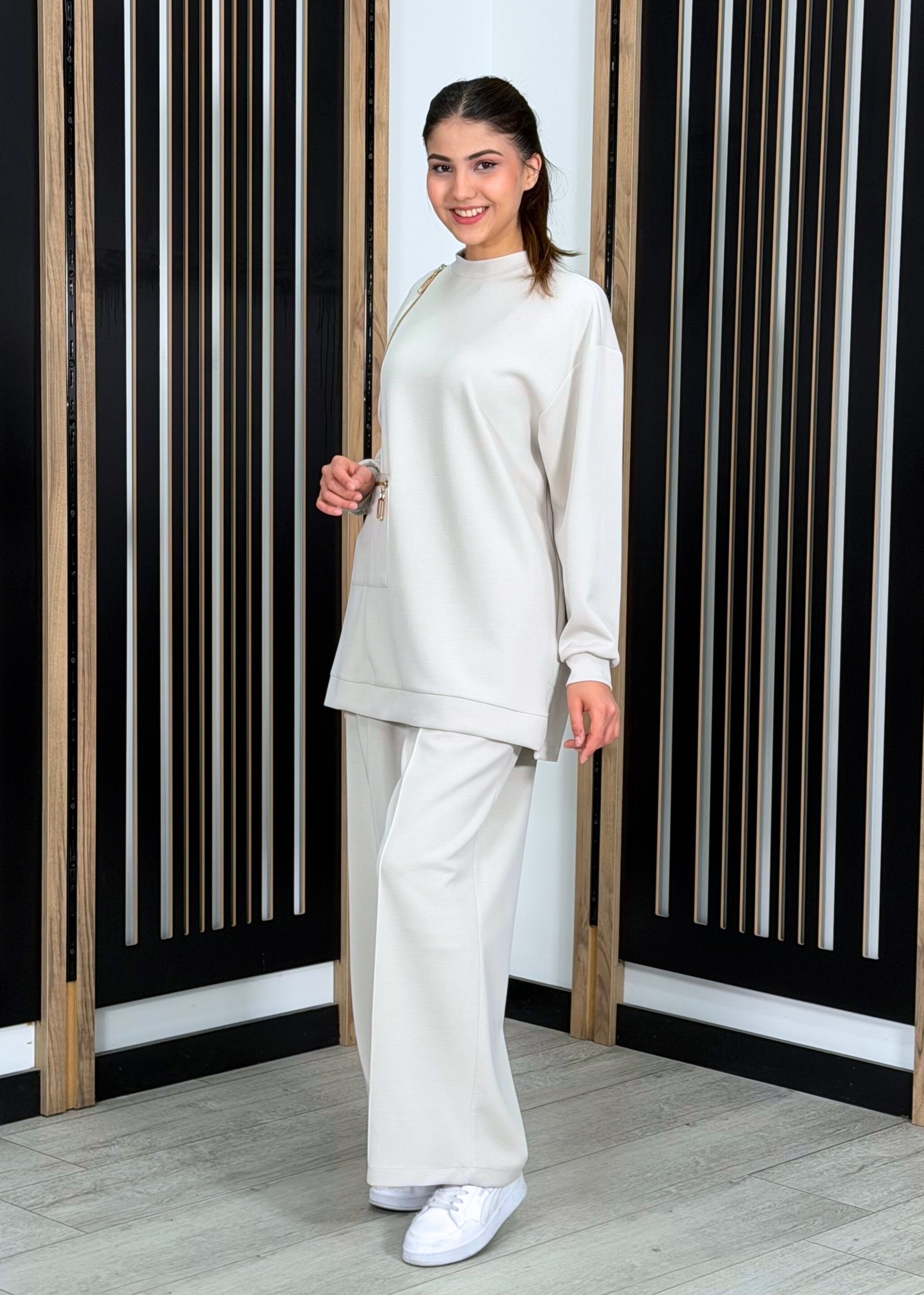 Nuss Önü Fermuar Detaylı Pantolonlu Takım TAŞ