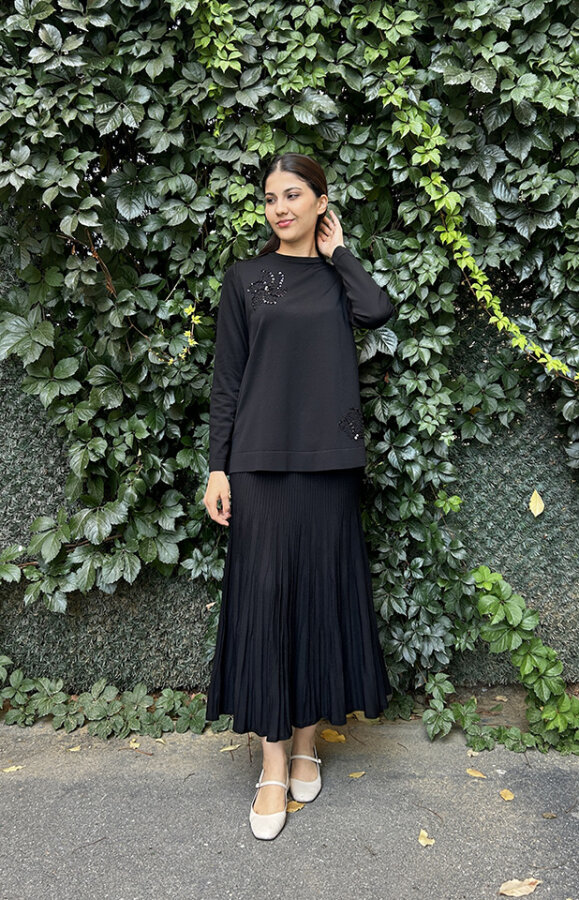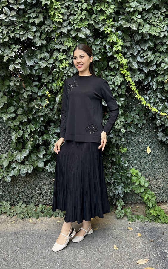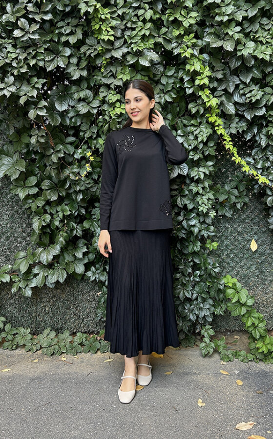 Nuss Önü İşlemeli Etekli Takım SİYAH