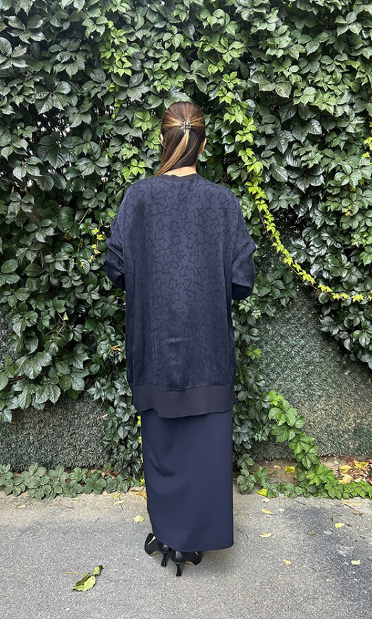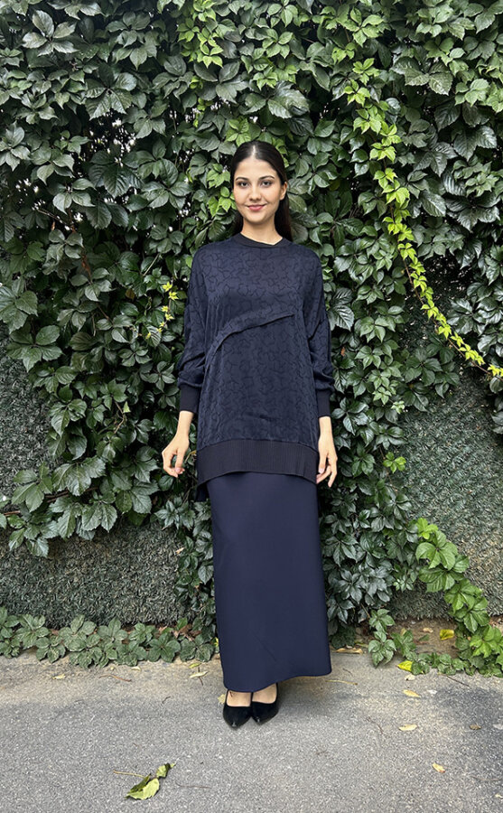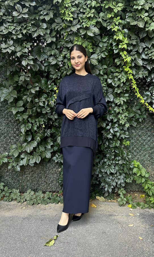 Nuss Önu Kısa Arkası Uzun Motifli Tunik LACİVERT