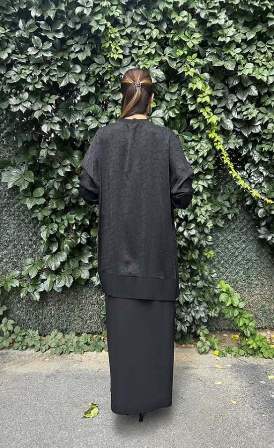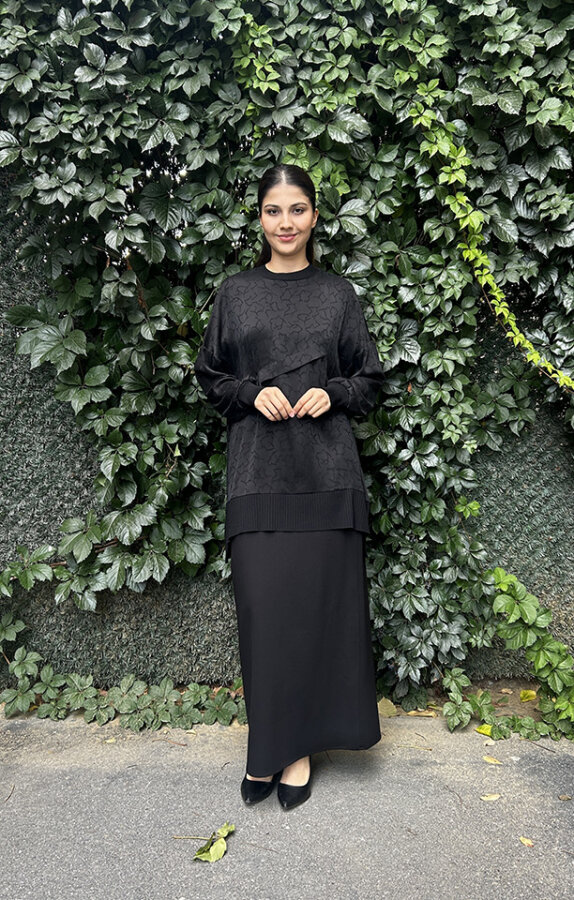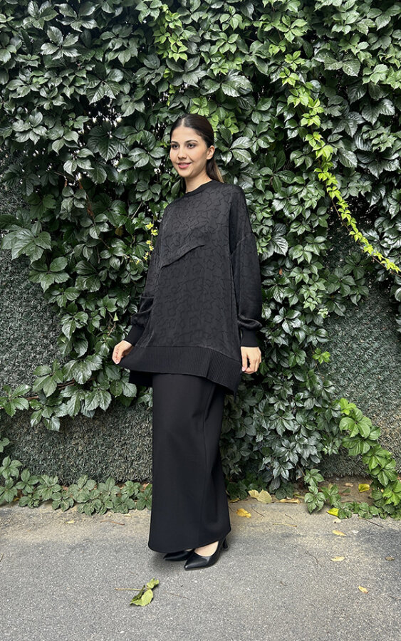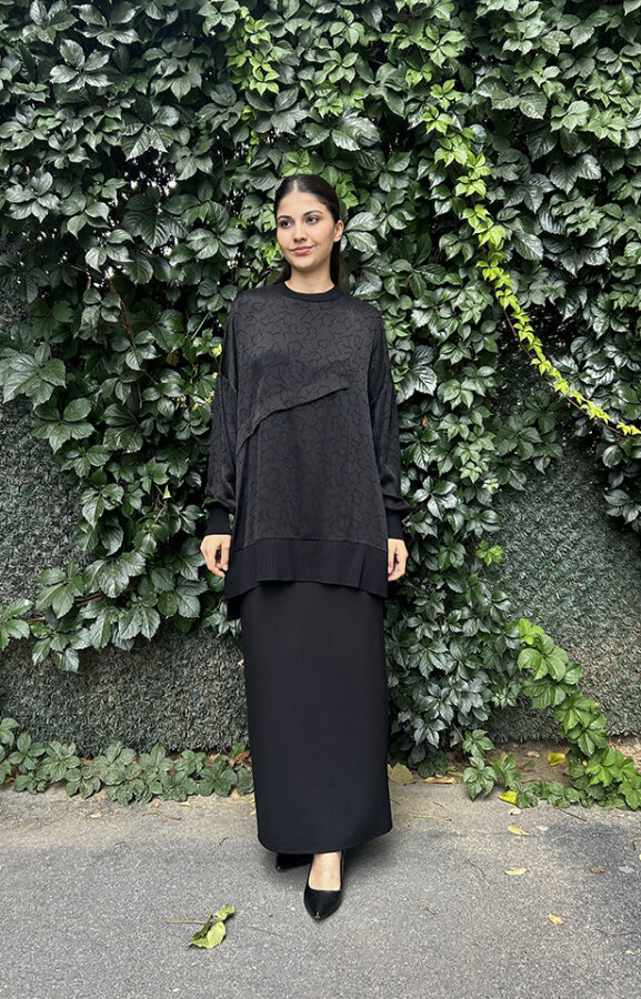 Nuss Önu Kısa Arkası Uzun Motifli Tunik SİYAH