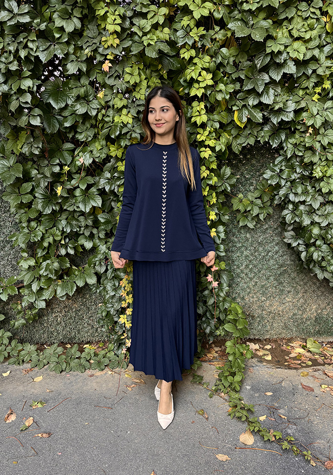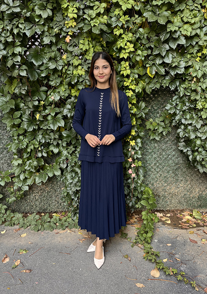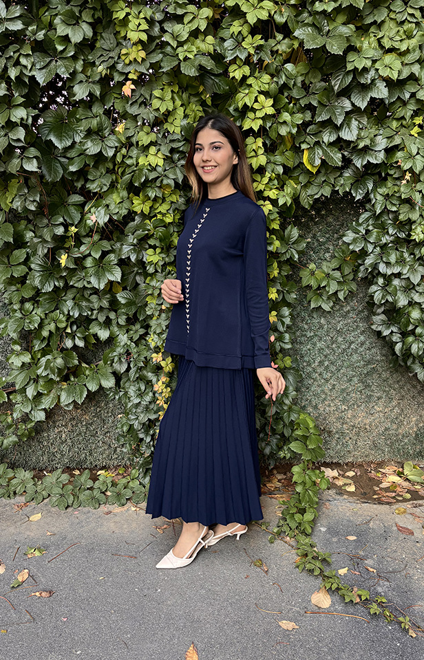 Nuss Önü Taşlı Etekli Takım LACİVERT