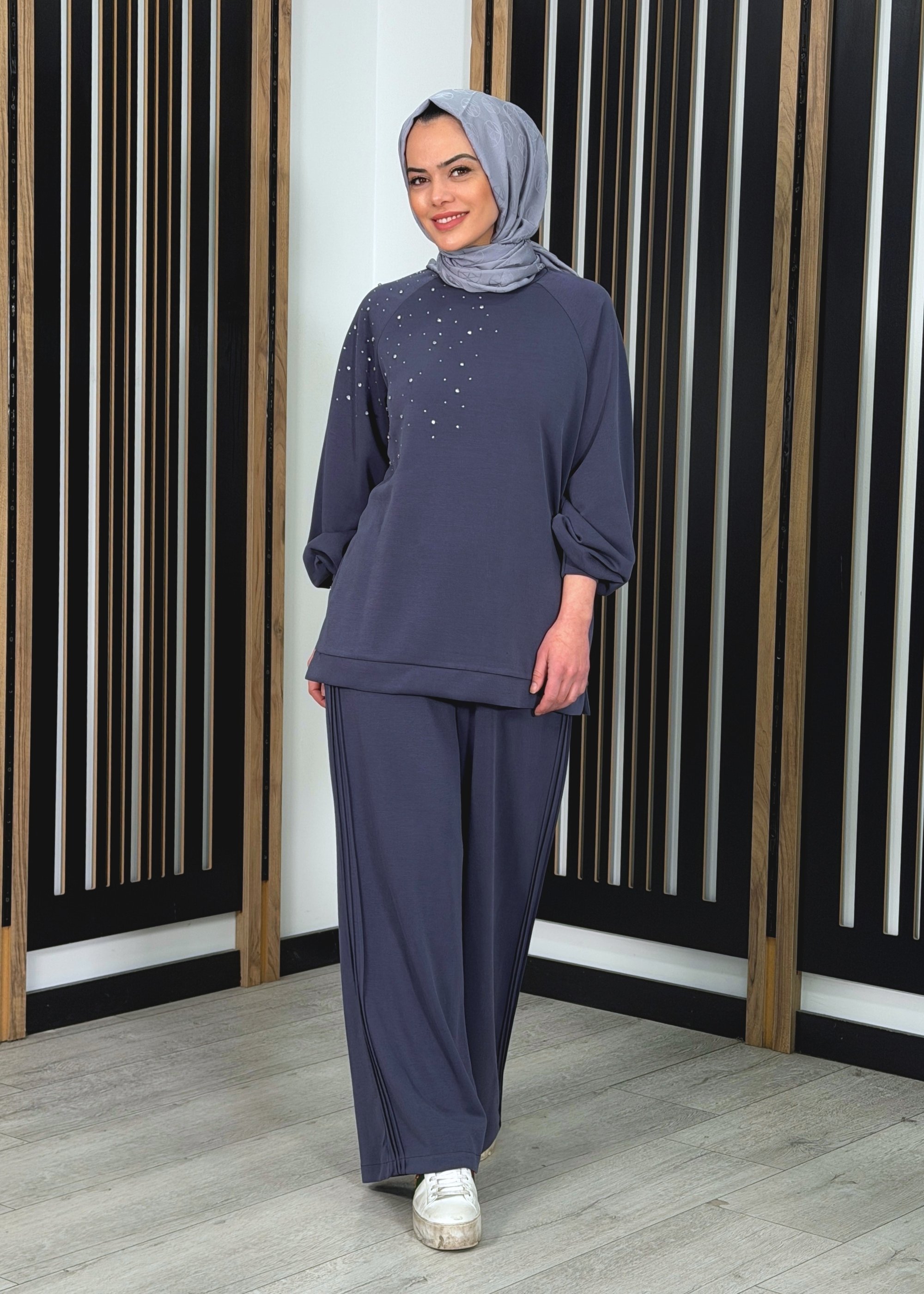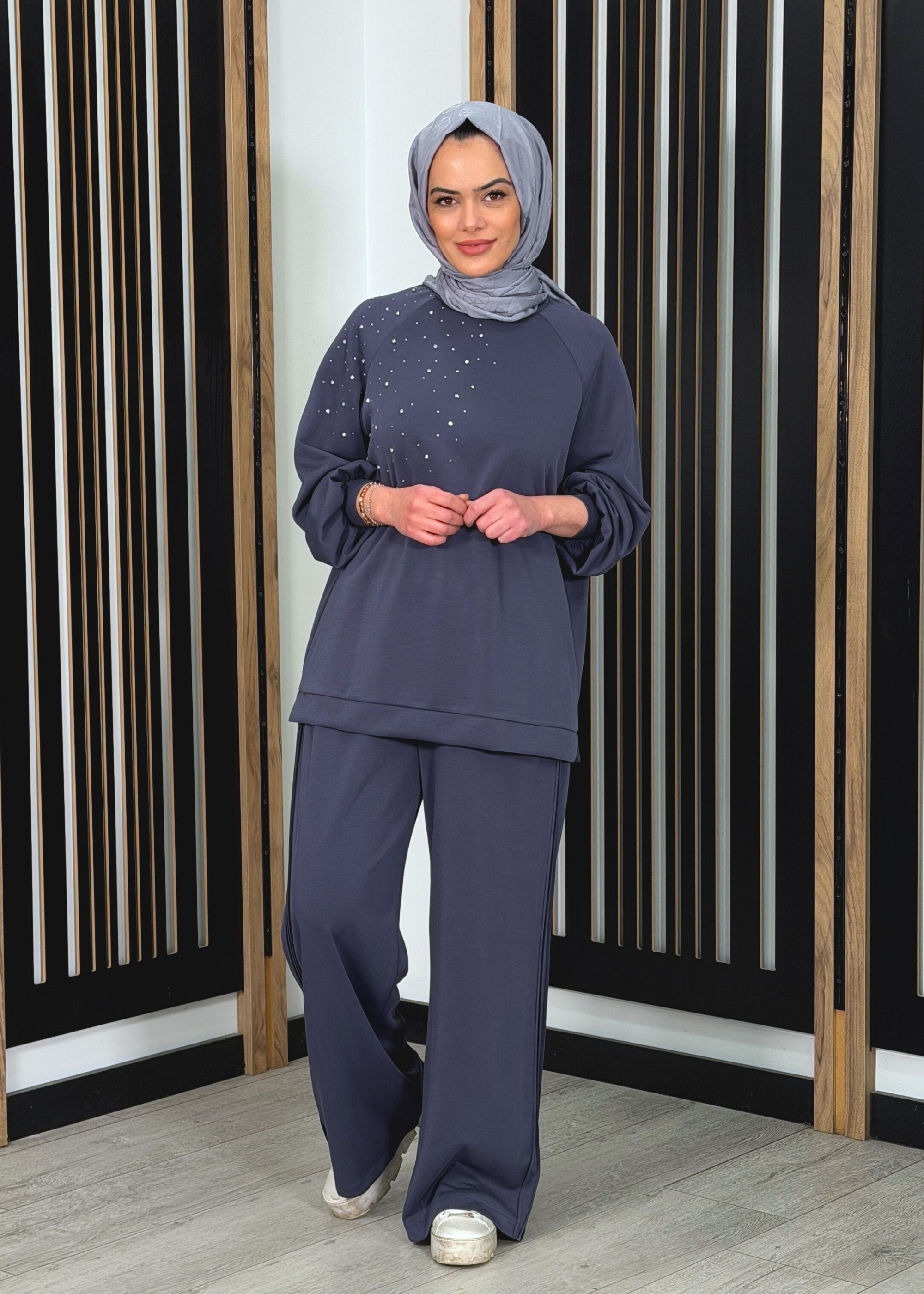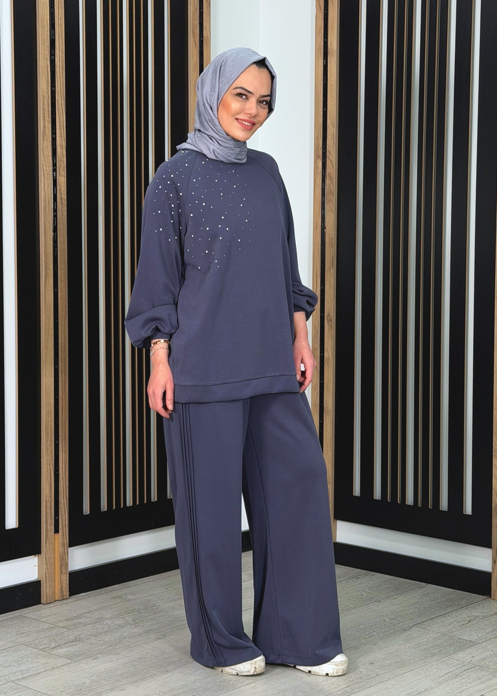 Nuss Önü Taşlı Pantolonlu Takım LACİVERT