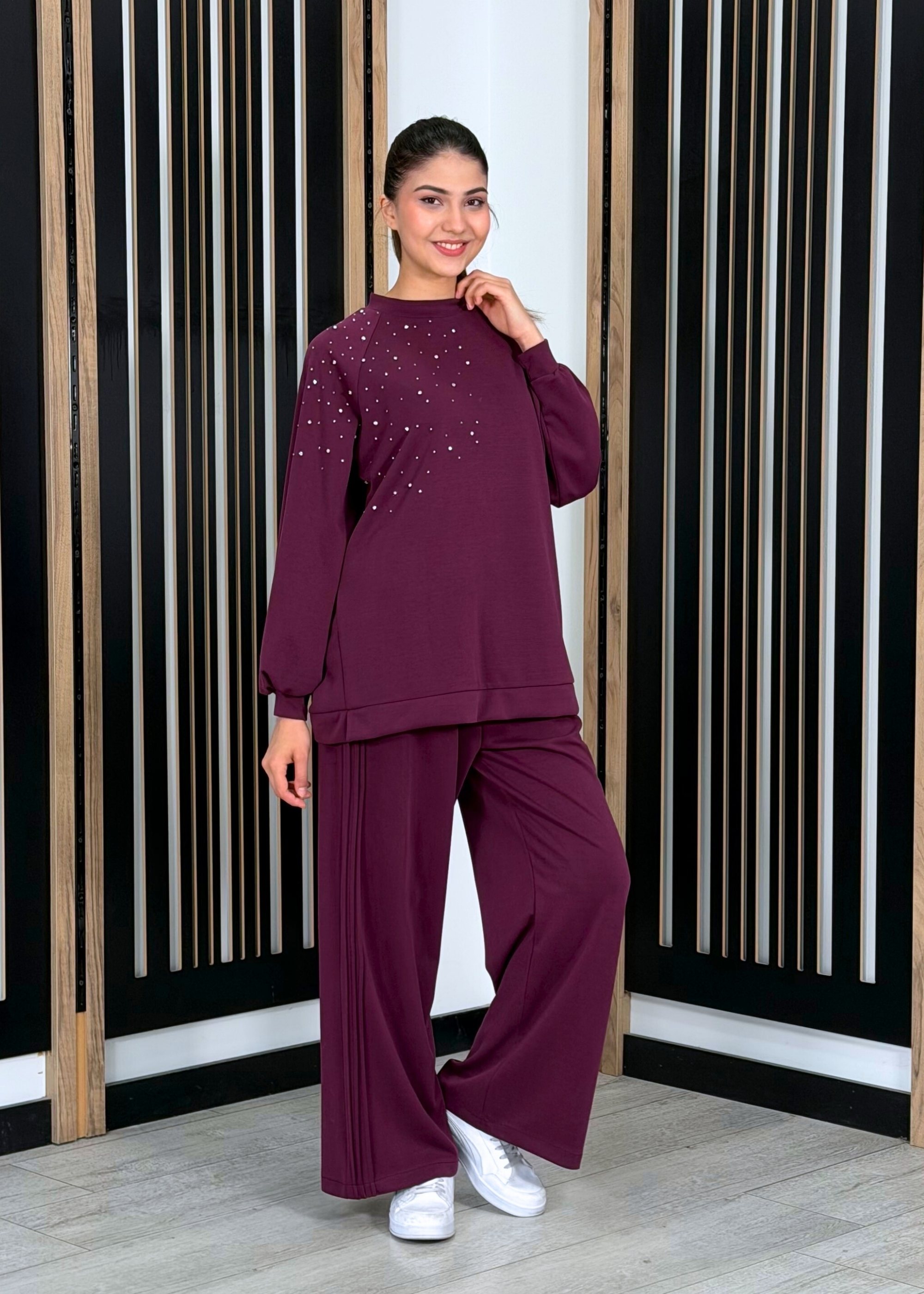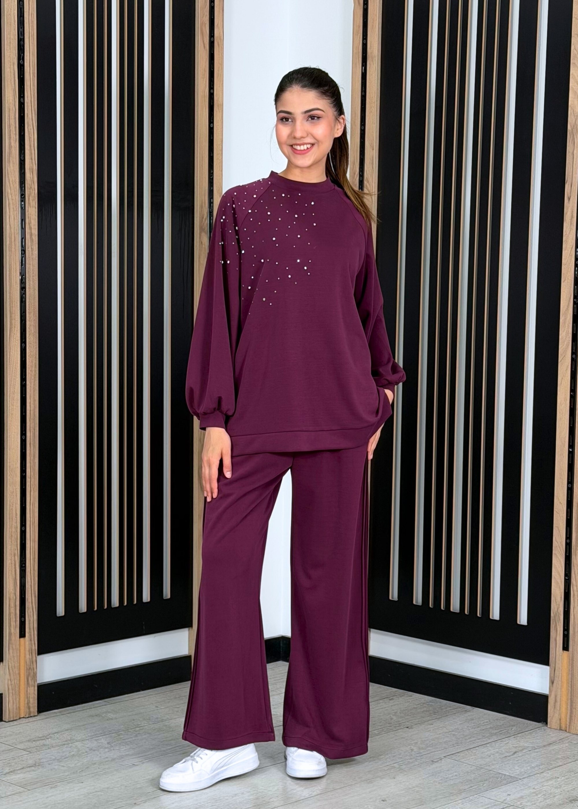 Nuss Önü Taşlı Pantolonlu Takım MÜRDÜM