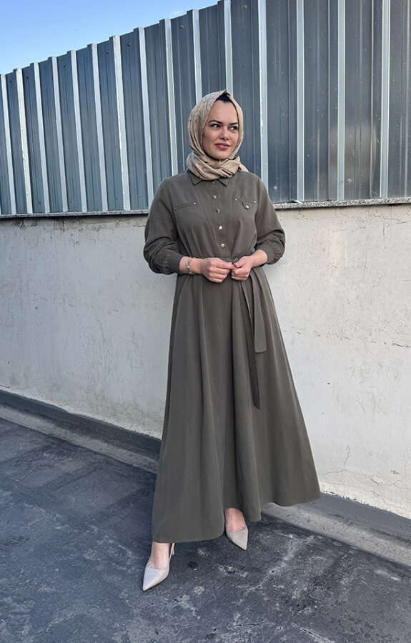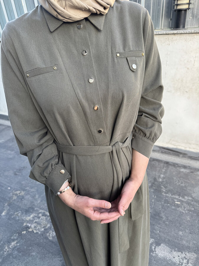 Nuss Önü Yarım Çıtçıtlı Elbise HAKİ