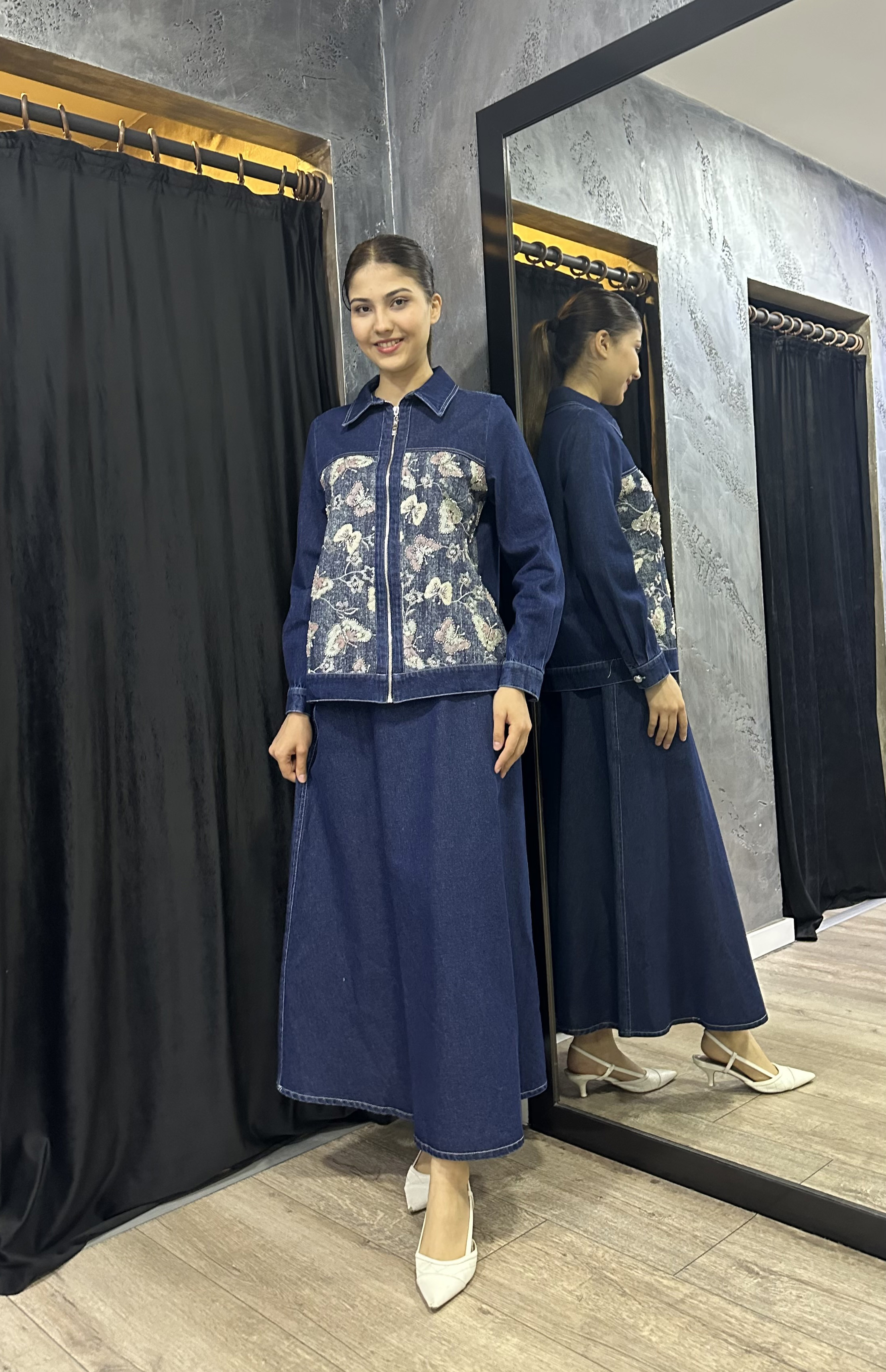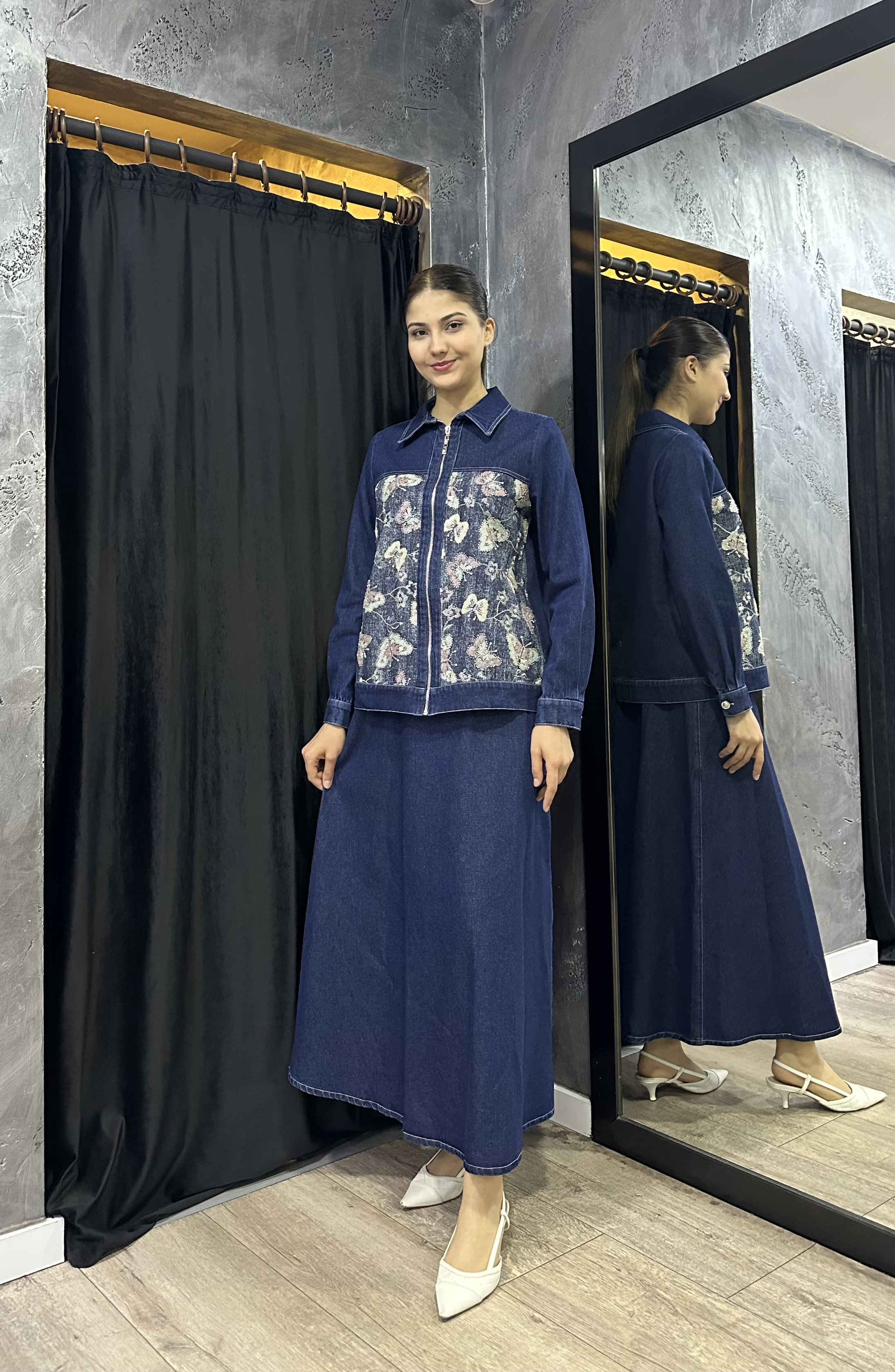 Orhan Desenli Kot Etekli Takım LACİVERT