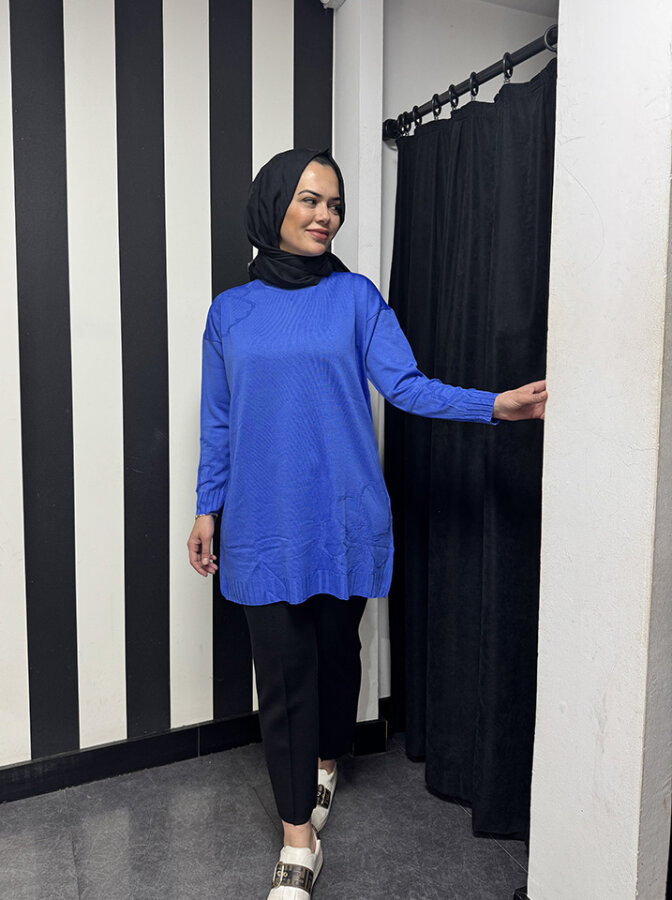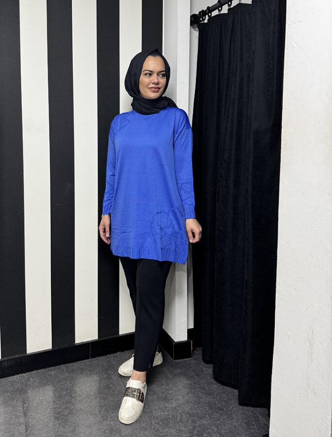 Orhan Etek Ucu ve Kol Ucu Çiçek Detaylı Tunik SAKS