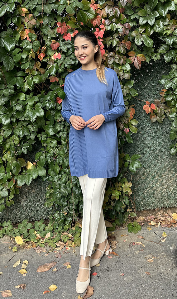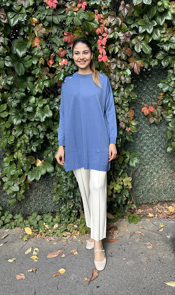 Orhan Omuzu Düğme Detaylı Tunik İNDİGO
