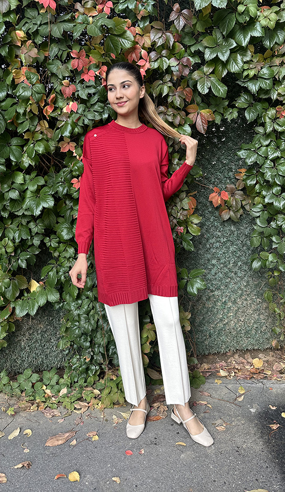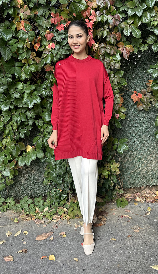 Orhan Omuzu Düğme Detaylı Tunik KIRMIZI
