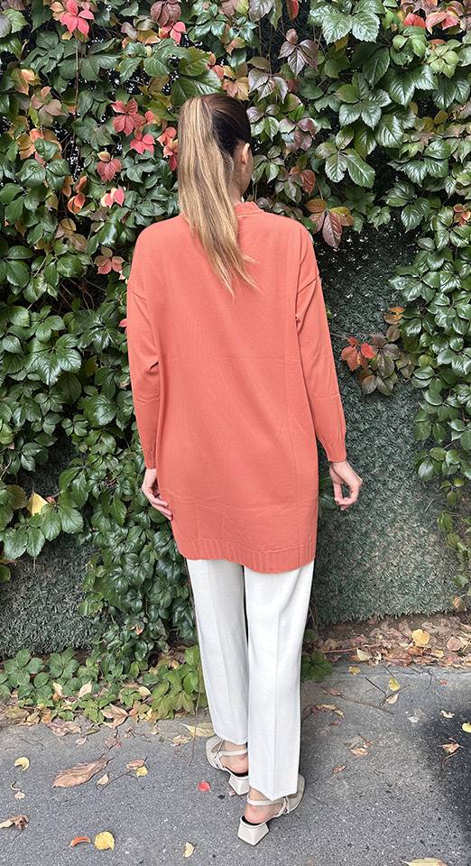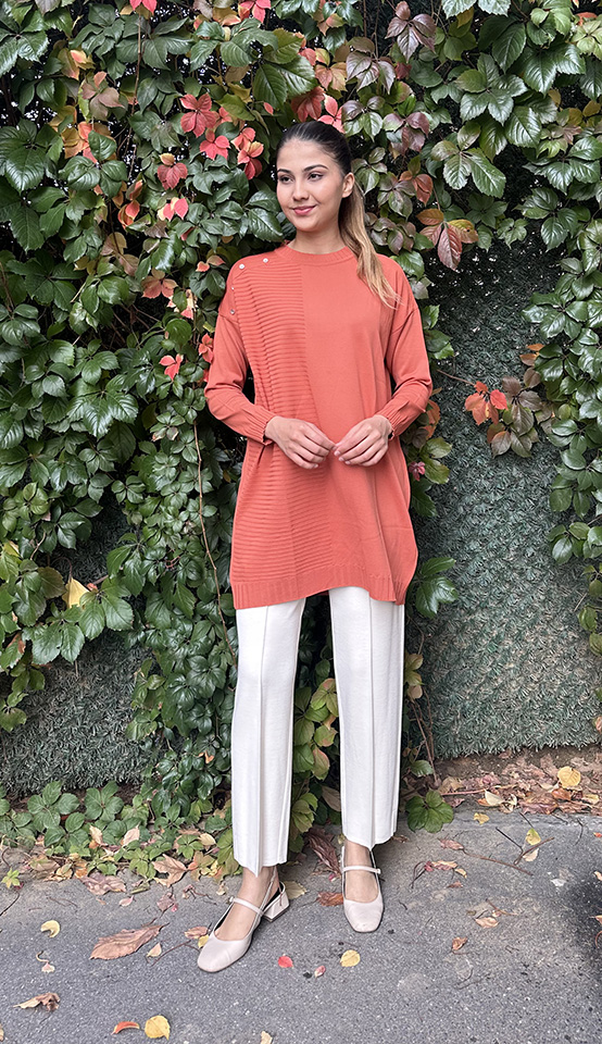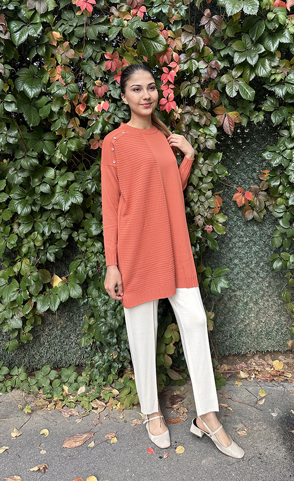 Orhan Omuzu Düğme Detaylı Tunik ORANJ