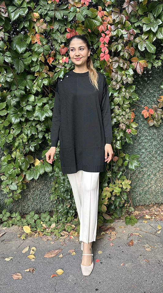 Orhan Omuzu Düğme Detaylı Tunik SİYAH