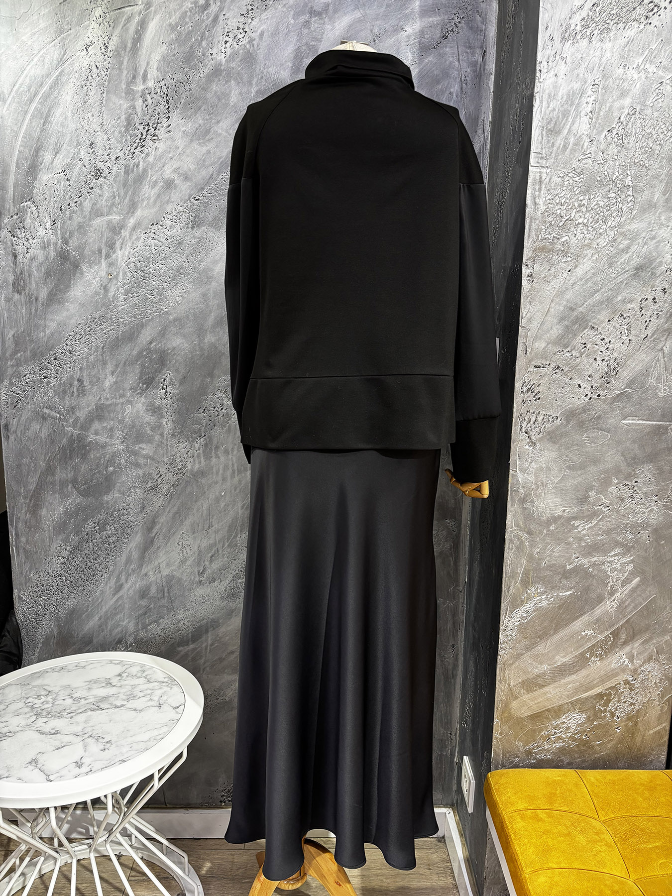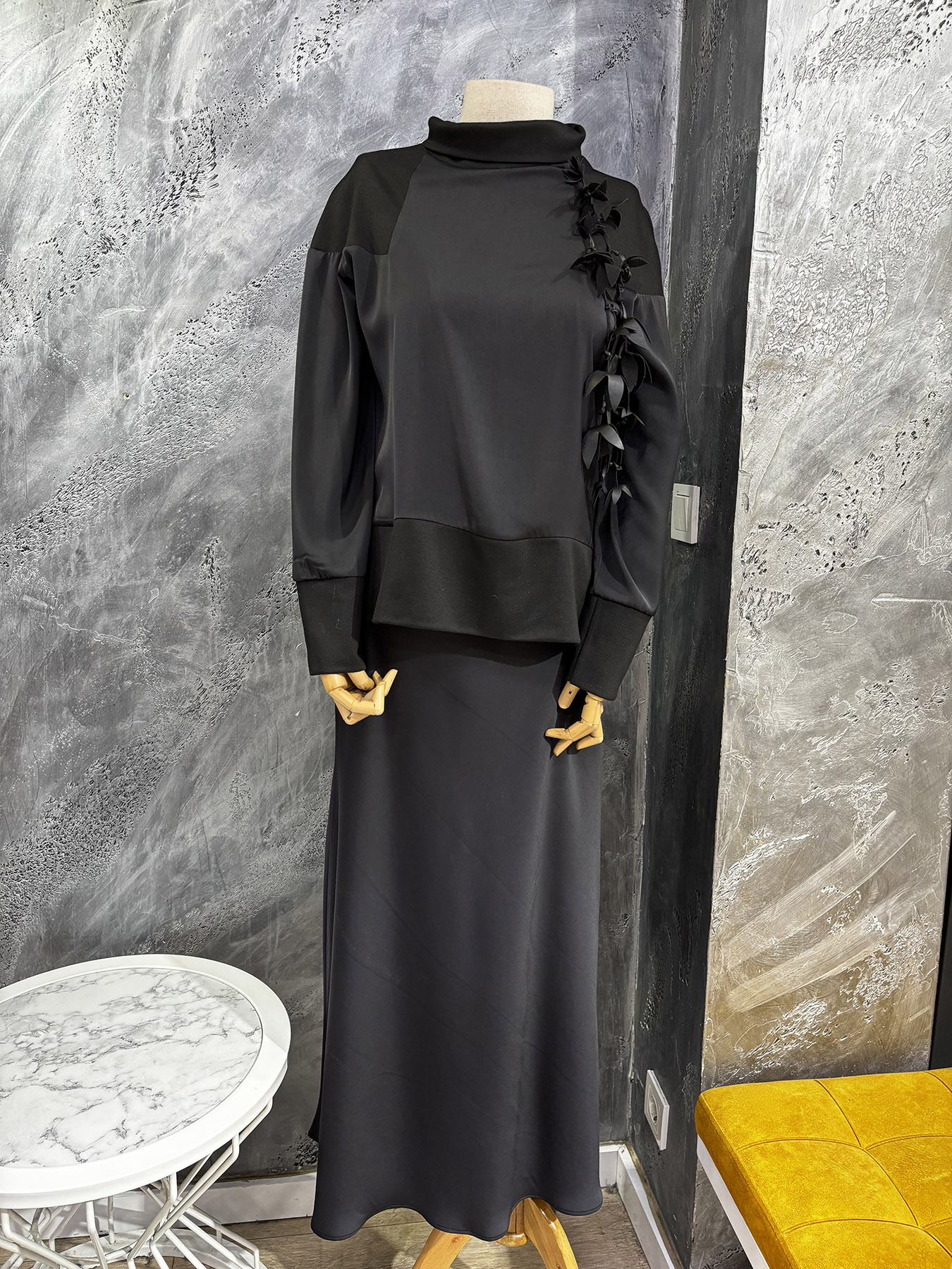 Qupra Çiçek Aksesuar Detaylı Saten Etek Detaylı Takım SİYAH