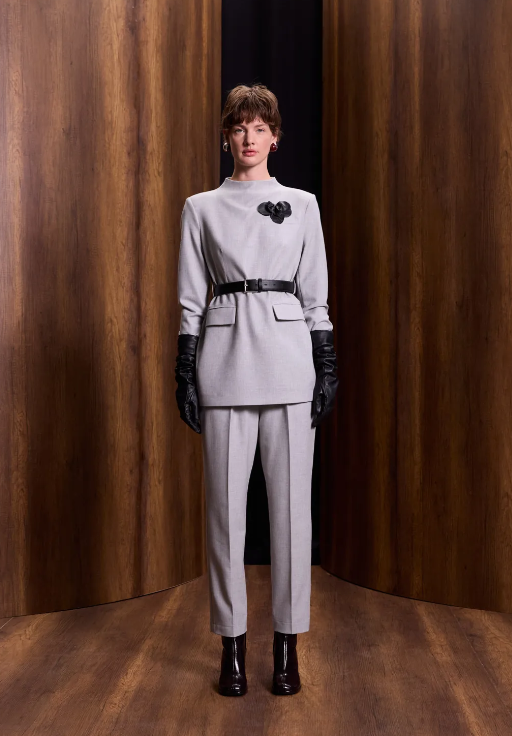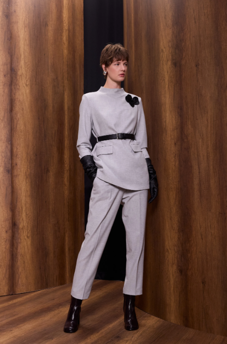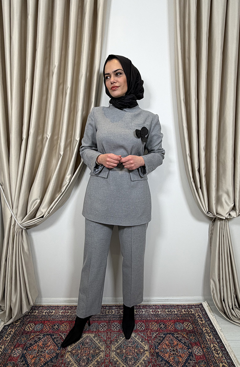 Qupra Çiçek Aksesuarlı Poliviskon Takım GRİ