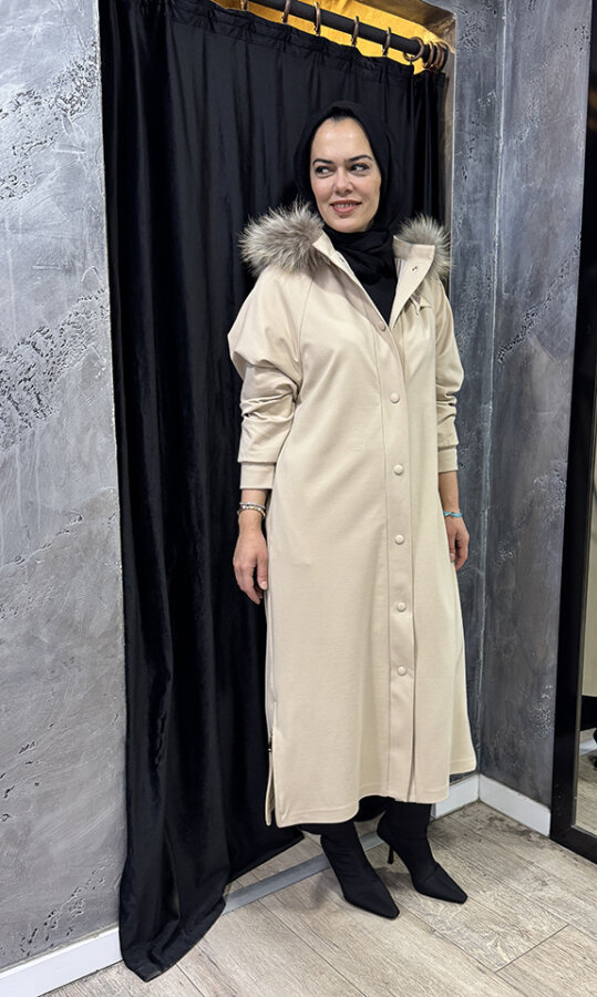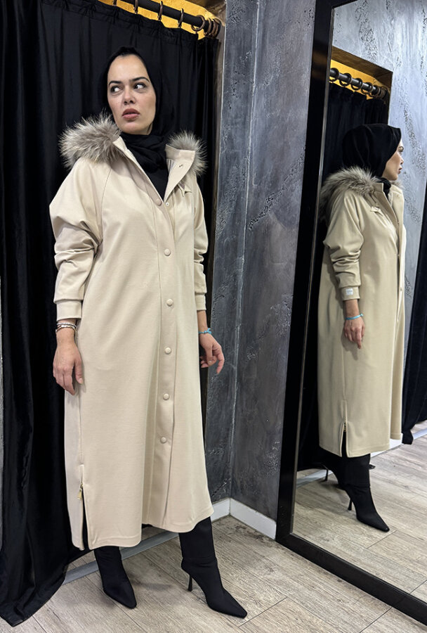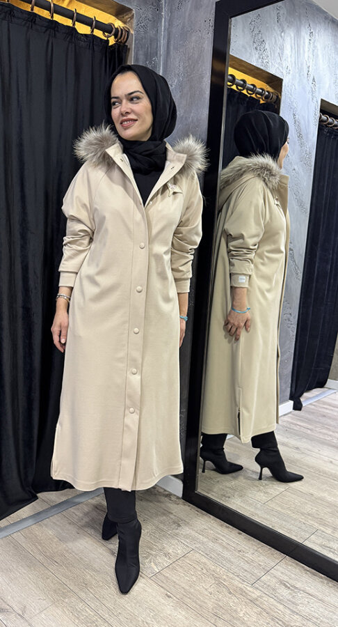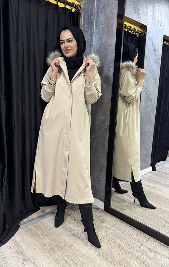 Qupra Yakası Ve Kolları Kürklü Kap CAMEL