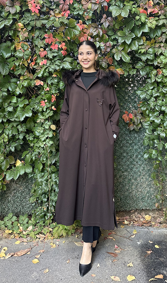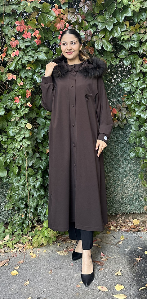 Şükran Önü Çıtçıtlı Kapişonlu Kap KAHVE