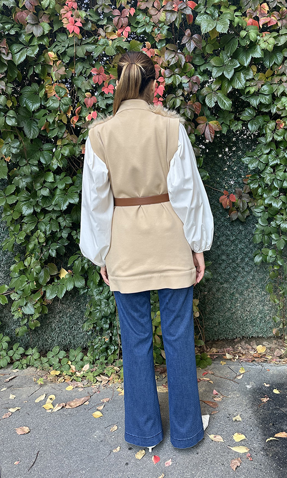MissWhence Önden Fermuarlı Kuşaklı Yelek KAHVE